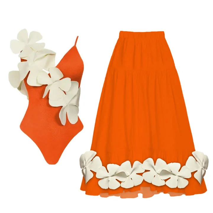 2024 유럽과 미국의 새로운 도착 수영복 V-목 꽃 장식 단색 백리스 수영복 및 우산 원피스 세트