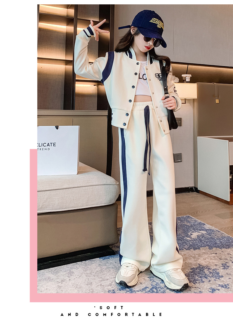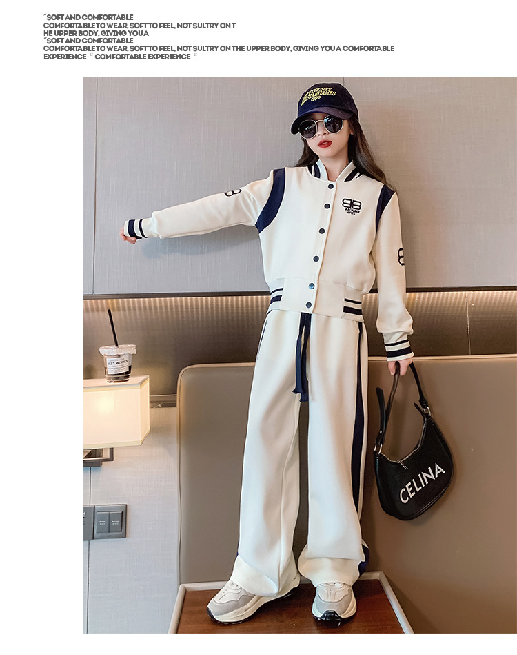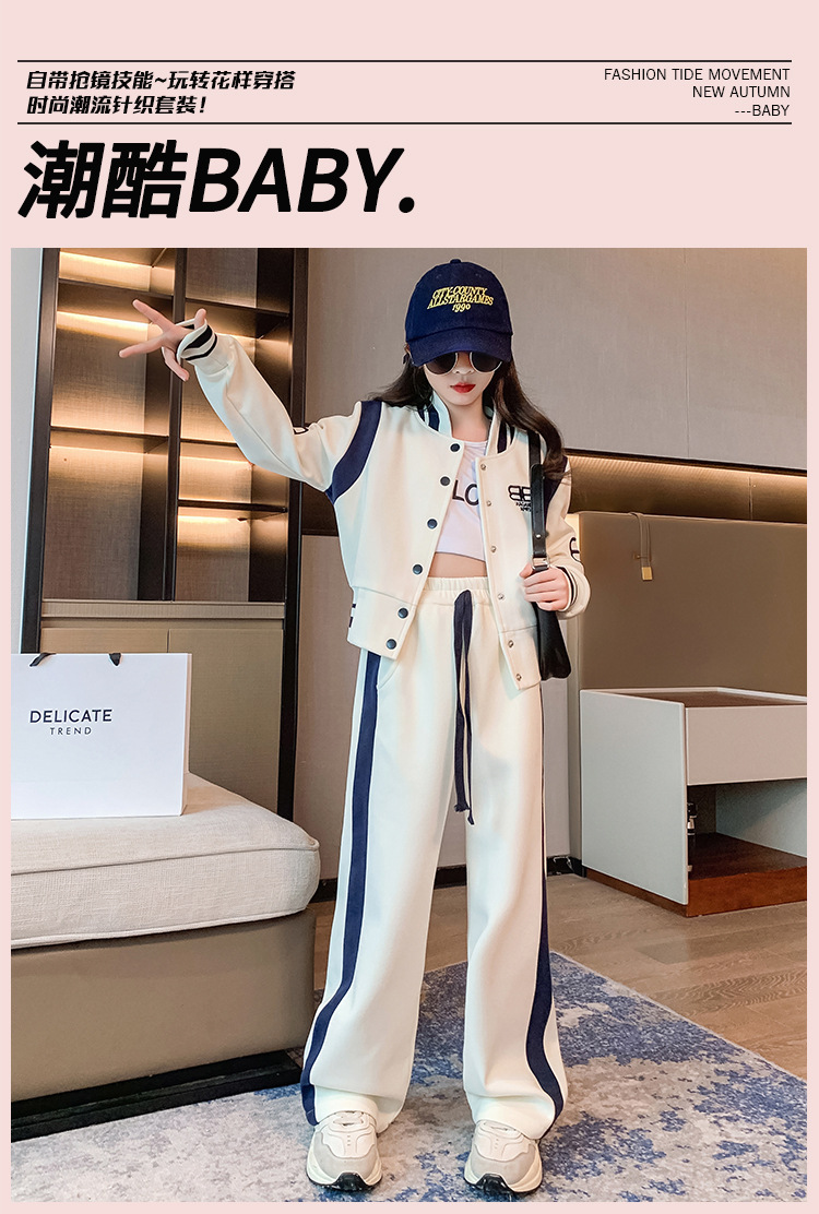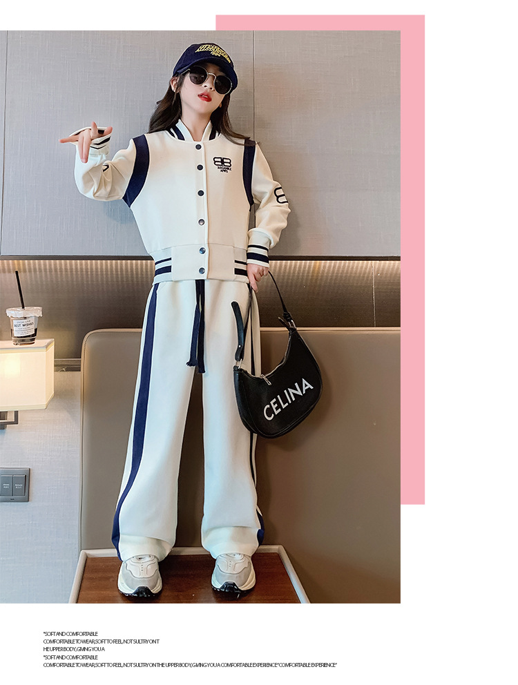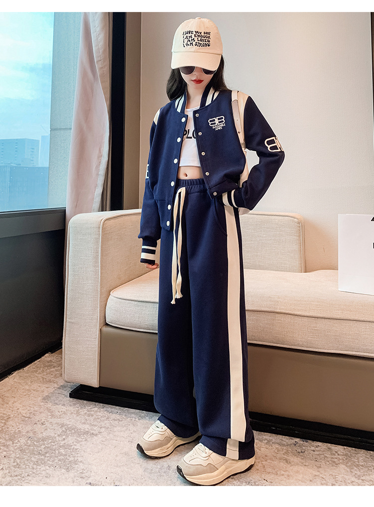 여아 세트 봄과 가을 새로운 서양 스타일 어린이 스포츠 야구 세트 재킷 중간 및 큰 어린이 봄 옷 투피스 세트스토어 가기