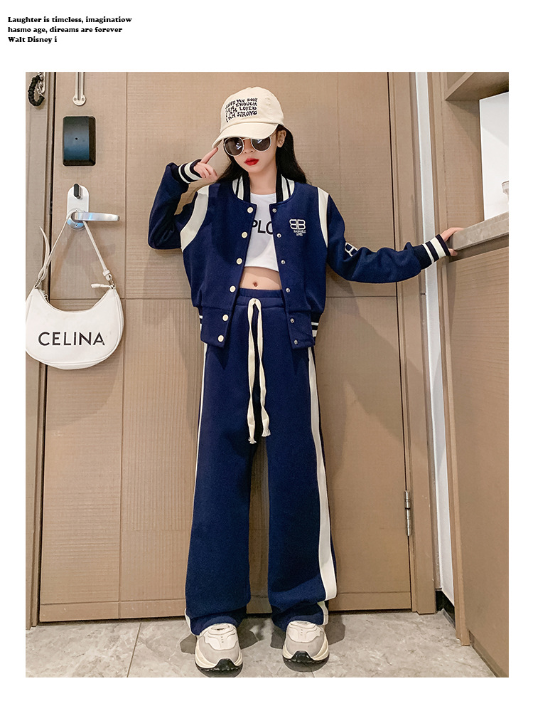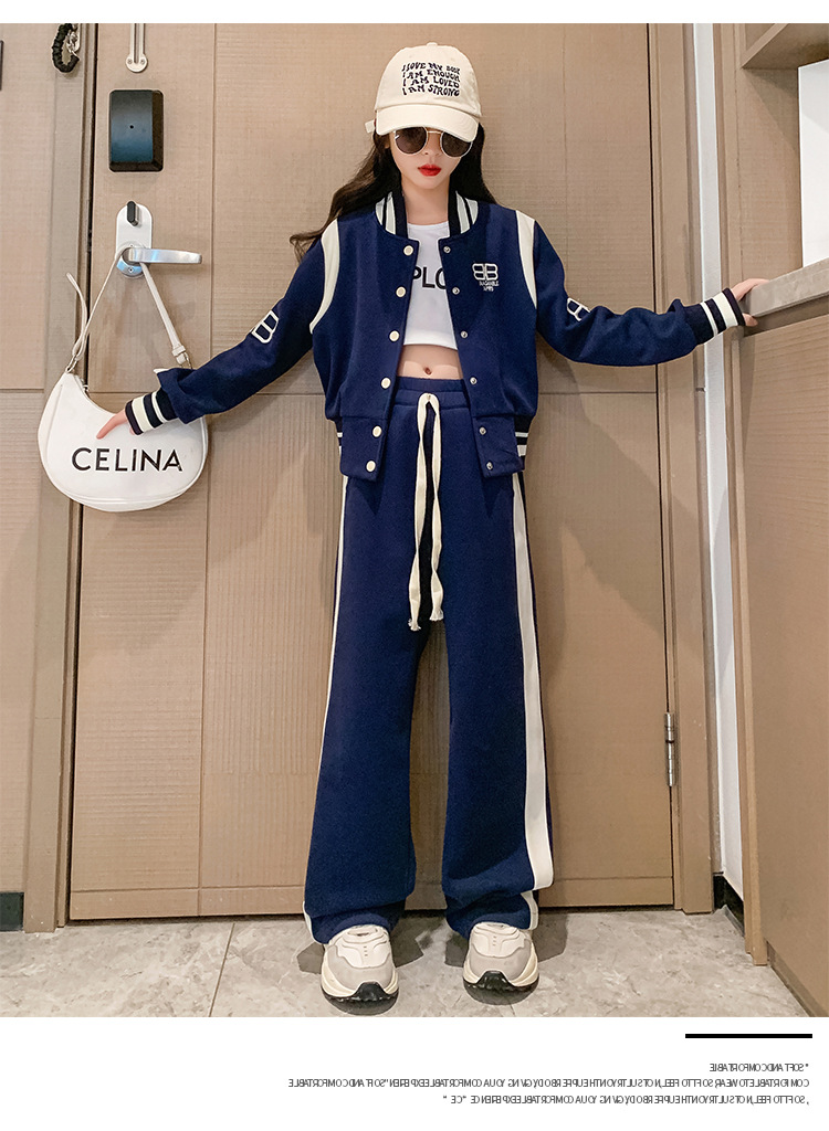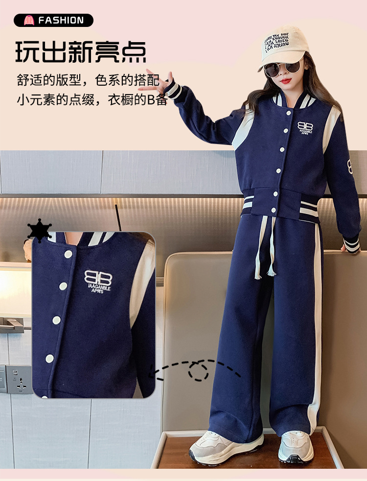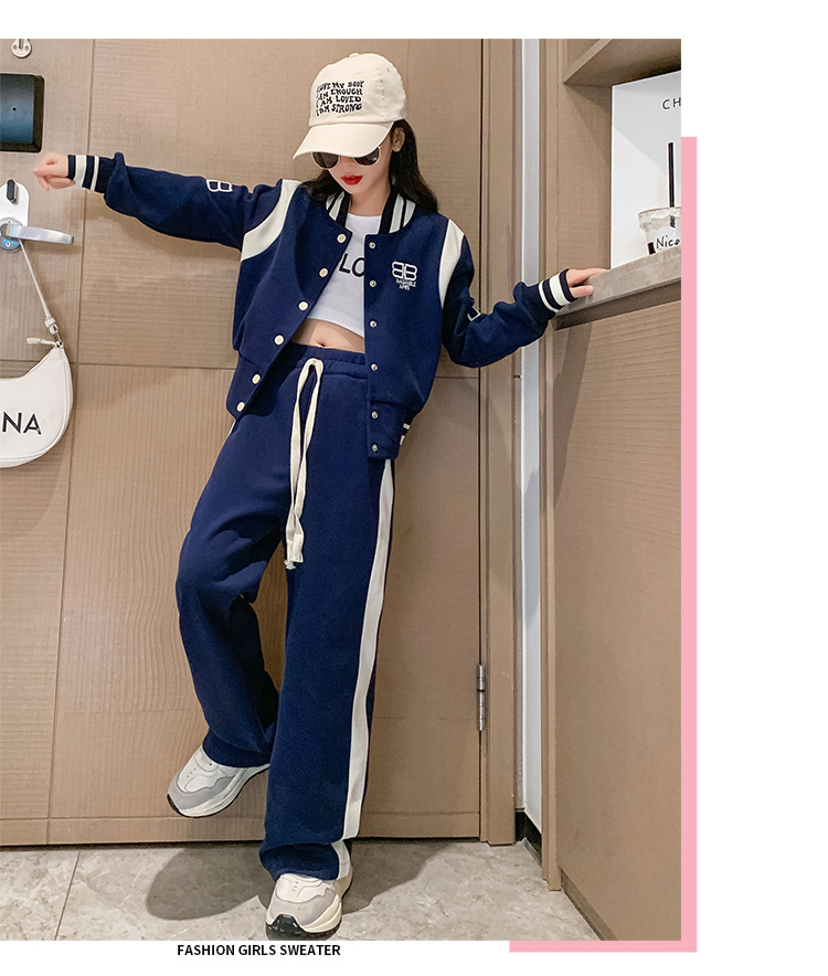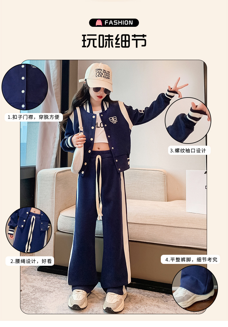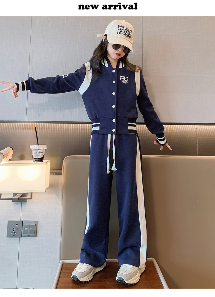 여아 세트 봄과 가을 새로운 서양 스타일 어린이 스포츠 야구 세트 재킷 중간 및 큰 어린이 봄 옷 투피스 세트스토어 가기