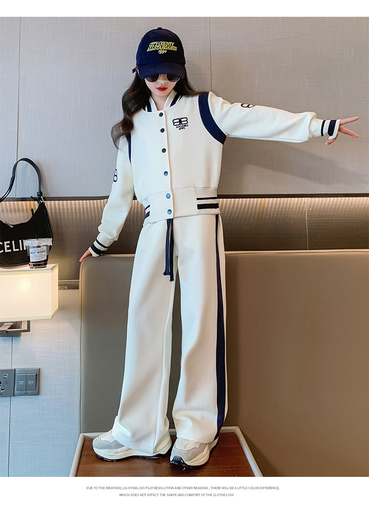 여아 세트 봄과 가을 새로운 서양 스타일 어린이 스포츠 야구 세트 재킷 중간 및 큰 어린이 봄 옷 투피스 세트