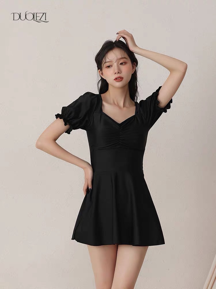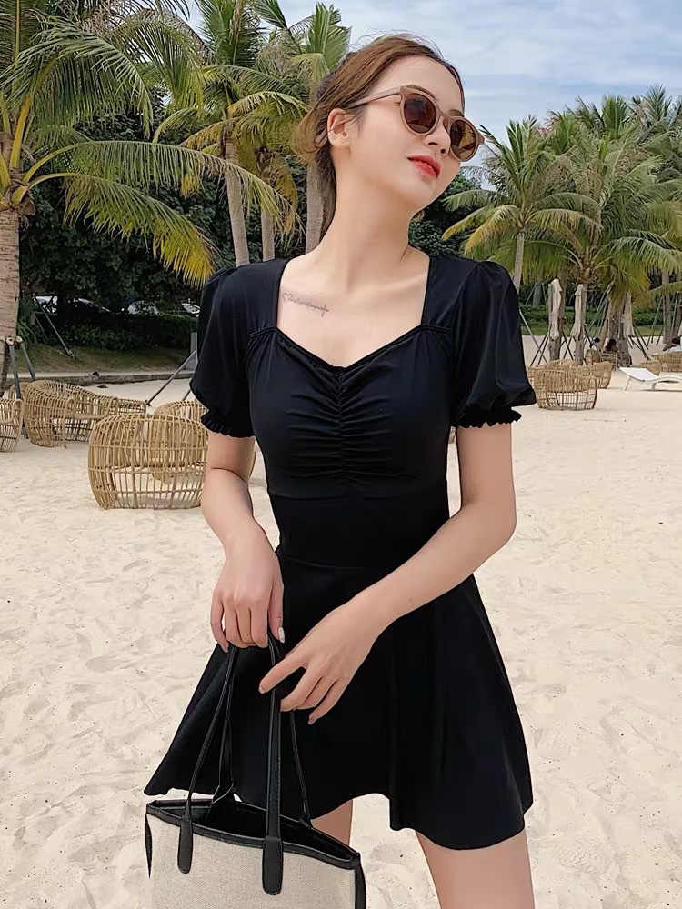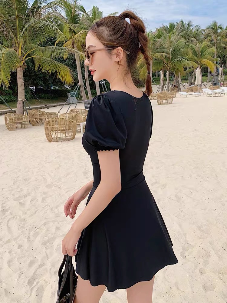 수영복 여성용 온천 블랙 수영복 섹시한 슬림 배꼽 커버 스타일 보수적 인 학생 여성스토어 가기