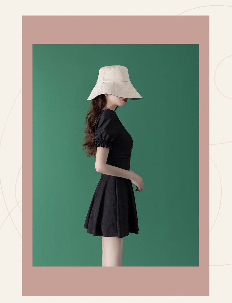 수영복 여성용 온천 블랙 수영복 섹시한 슬림 배꼽 커버 스타일 보수적 인 학생 여성