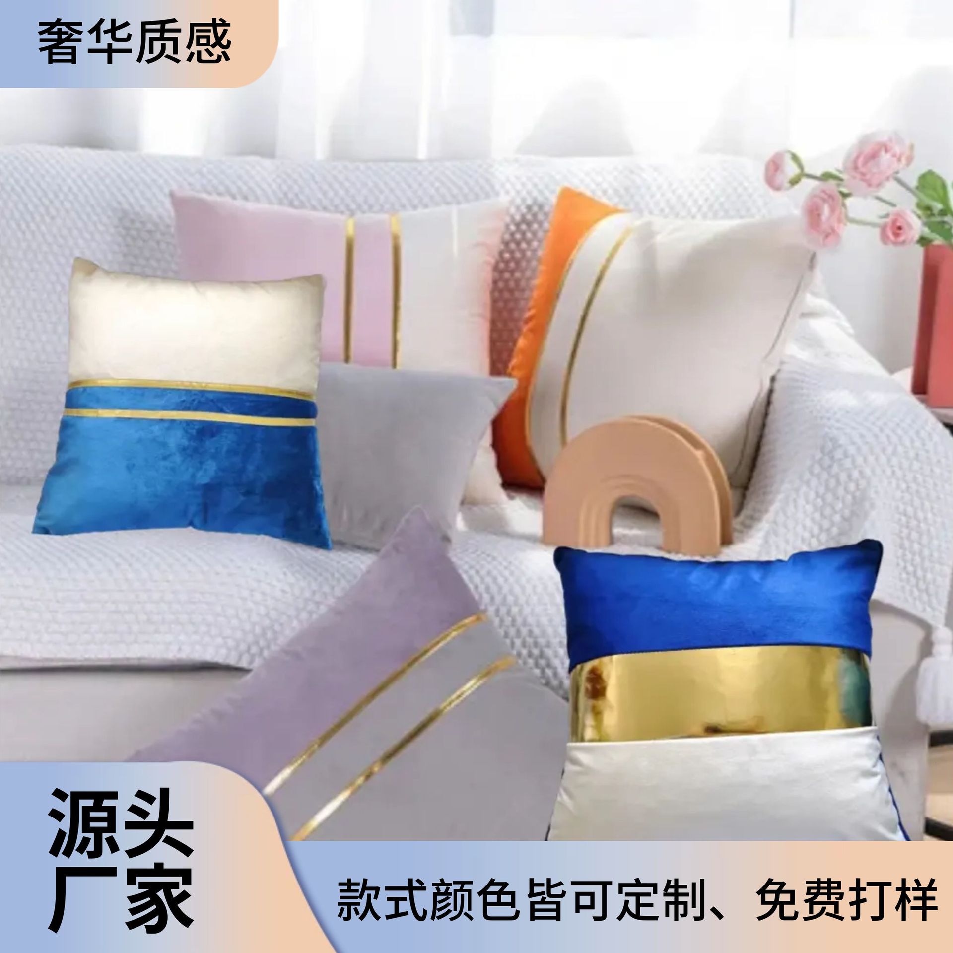 와우! 맞춤형 고급스러운 골드 테두리 패치워크 쿠션, 침대 옆 쿠션, 창문 옆 쿠션, 사무실 쿠션, 소파 쿠션, 인스타 감성스토어 가기