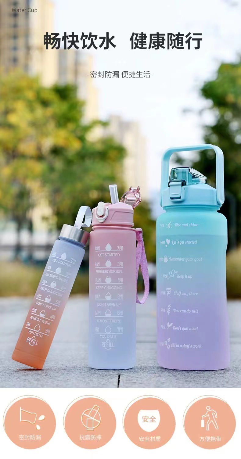 크로스 보더 폭발 재고 그라디언트 컬러 3 세트 컵 대용량 공간 컵 빨대 주전자 젖빛 스포츠 휴대용 주전자