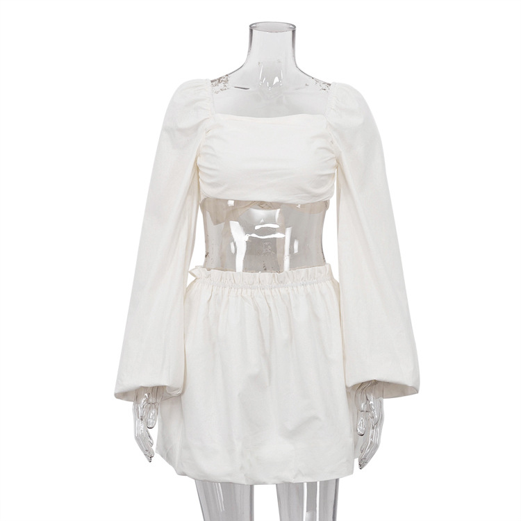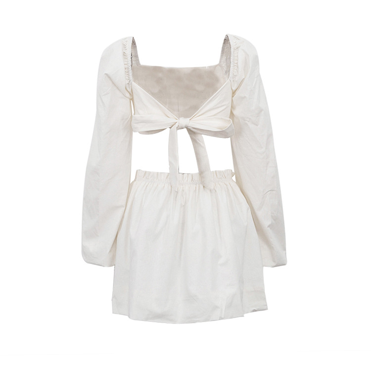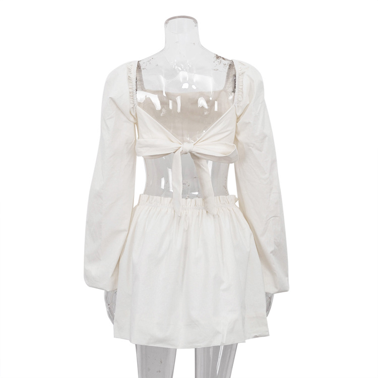 2025 봄 여름 유럽 및 미국 스타일 여성복 패션 레이스업 튜브탑 백리스 탑 플리츠 하이웨이스트 짧은 치마 투피스 세트