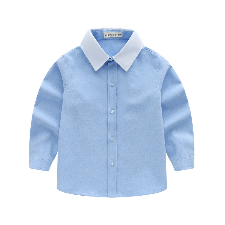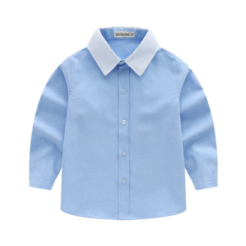남아 블루 셔츠 긴 소매 어린이 대학 중년 및 큰 어린이를위한 패션 옷깃 셔츠 3-14 세 초등학생 공연복