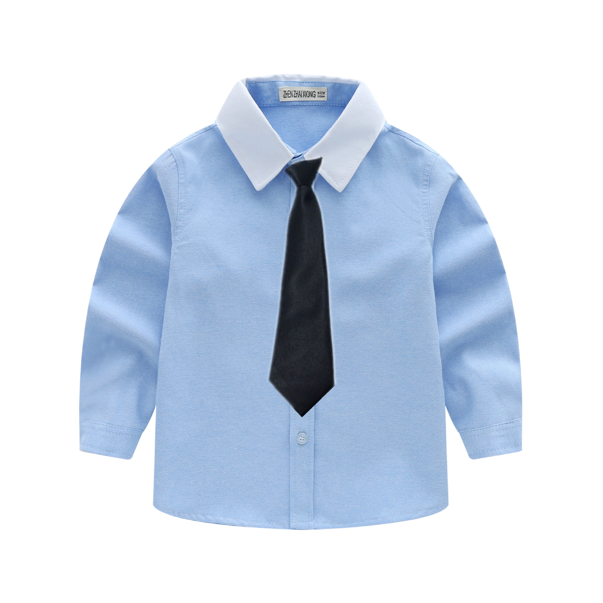 남아 블루 셔츠 긴 소매 어린이 대학 중년 및 큰 어린이를위한 패션 옷깃 셔츠 3-14 세 초등학생 공연복스토어 가기