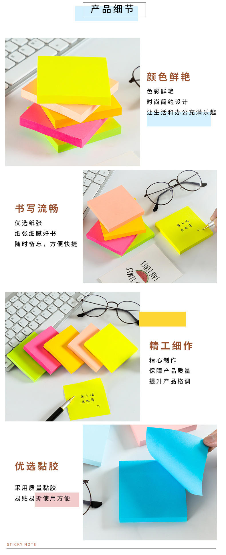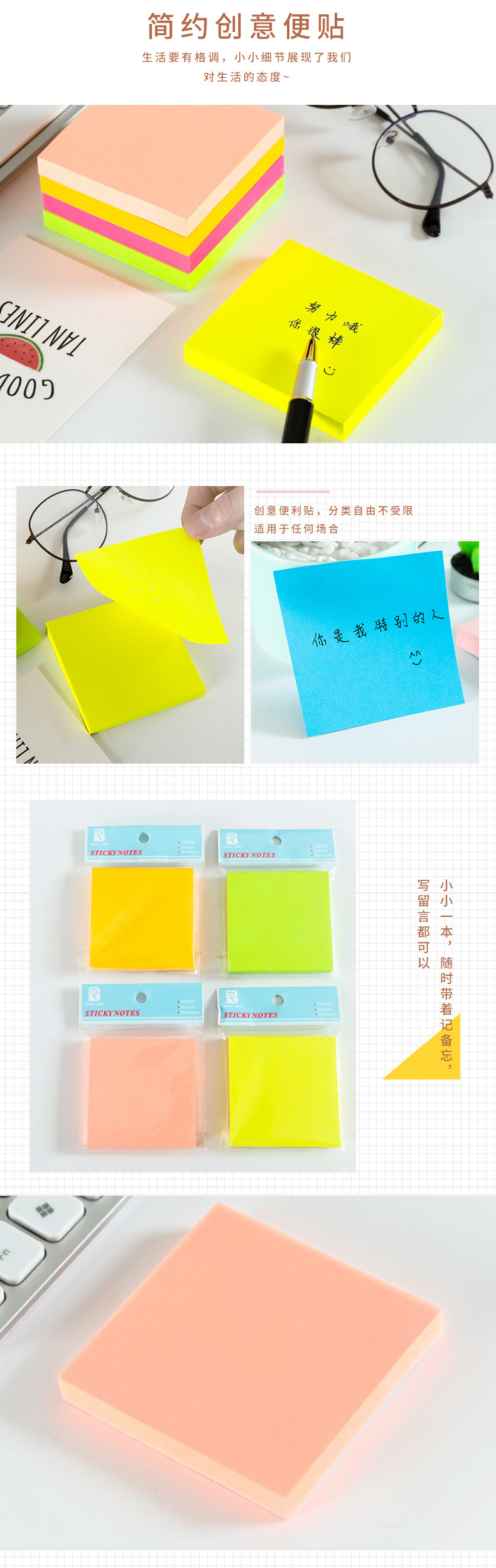 형광 컬러 자체 접착 포스트잇 노트 도매 n 번 노트 종이 창작 학생 사무실 메시지 노트 패드스토어 가기