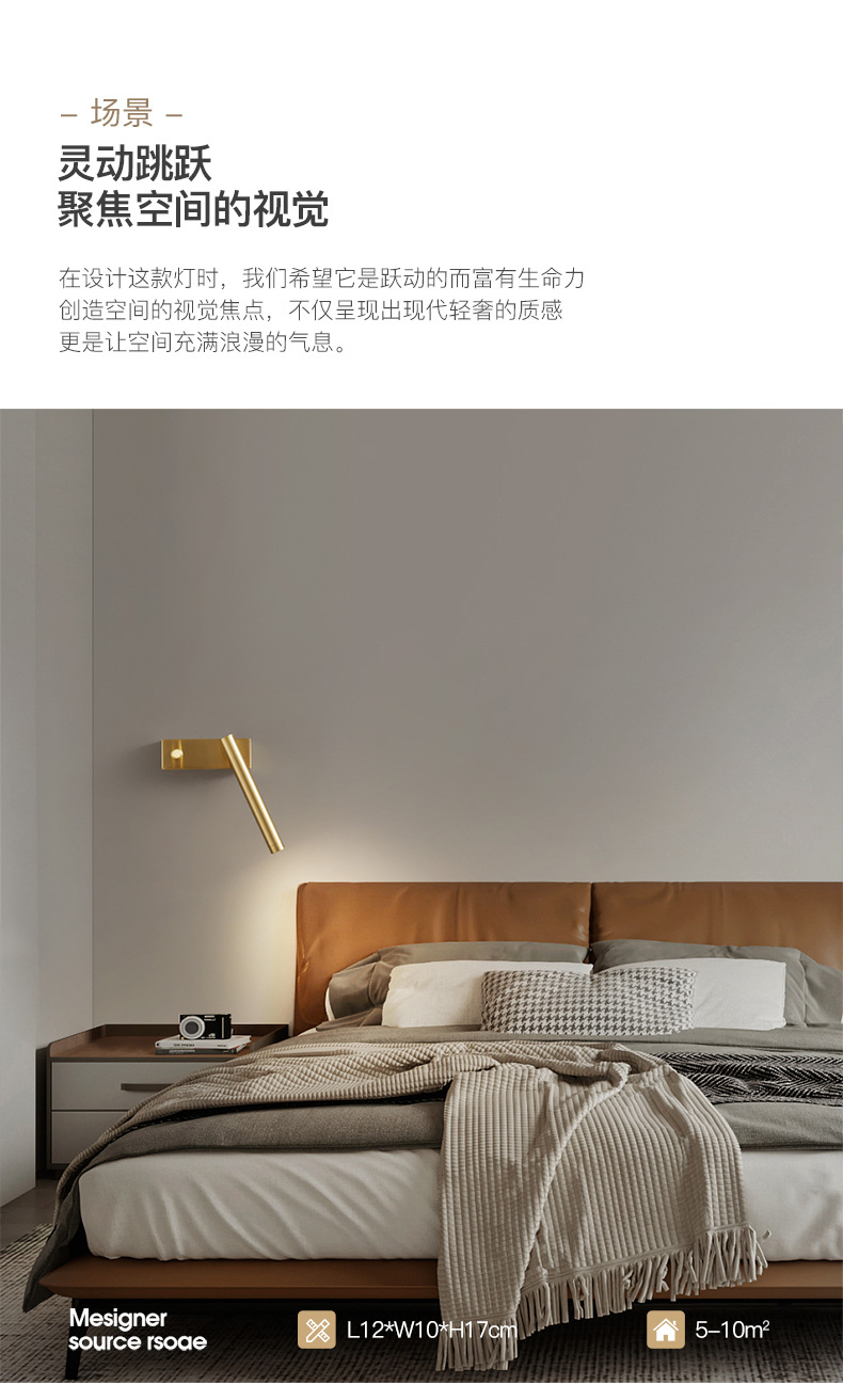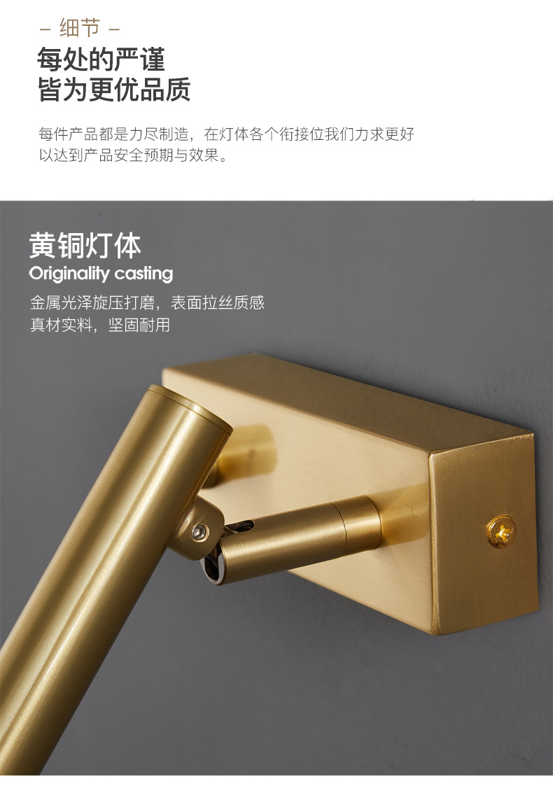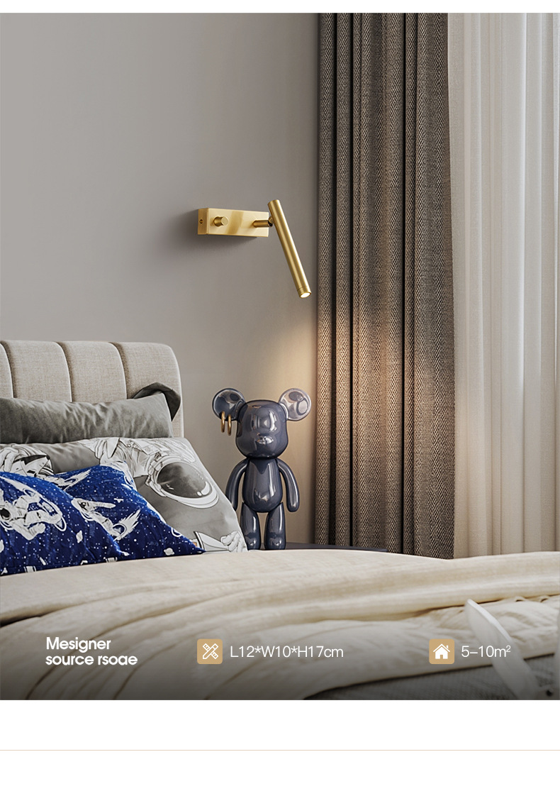 전동 스위치가 있는 올-쿠퍼 미니멀리스트 침대 옆 독서등, 현대적이고 심플한 창의적 디자인의 2025년 신형 주 침실 벽등