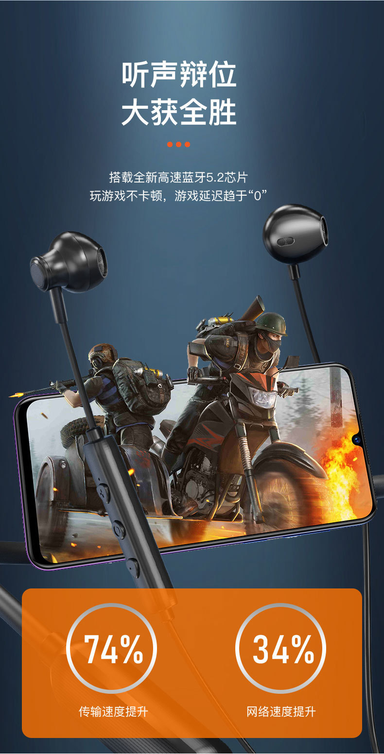 무선 블루투스 헤드셋, 목걸이형, 음악, 게임, 스포츠, 세미 인이어, 중저음 스테레오, e스포츠, 낮은 지연 시간
