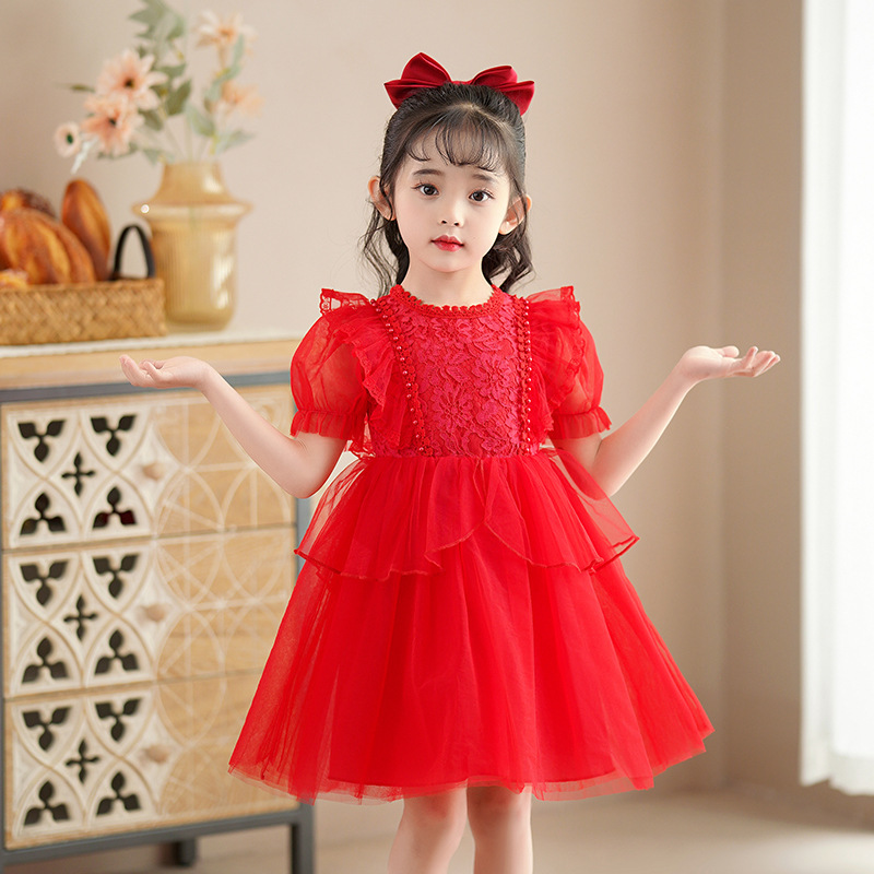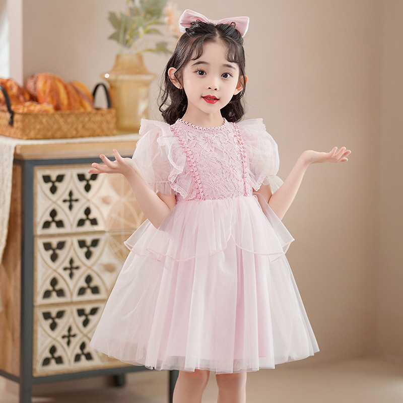 여자 공주 원피스 여름 2023 새로운 어린이 원피스 어린이 날 성능 퍼프 슬리브 레이스 원피스스토어 가기