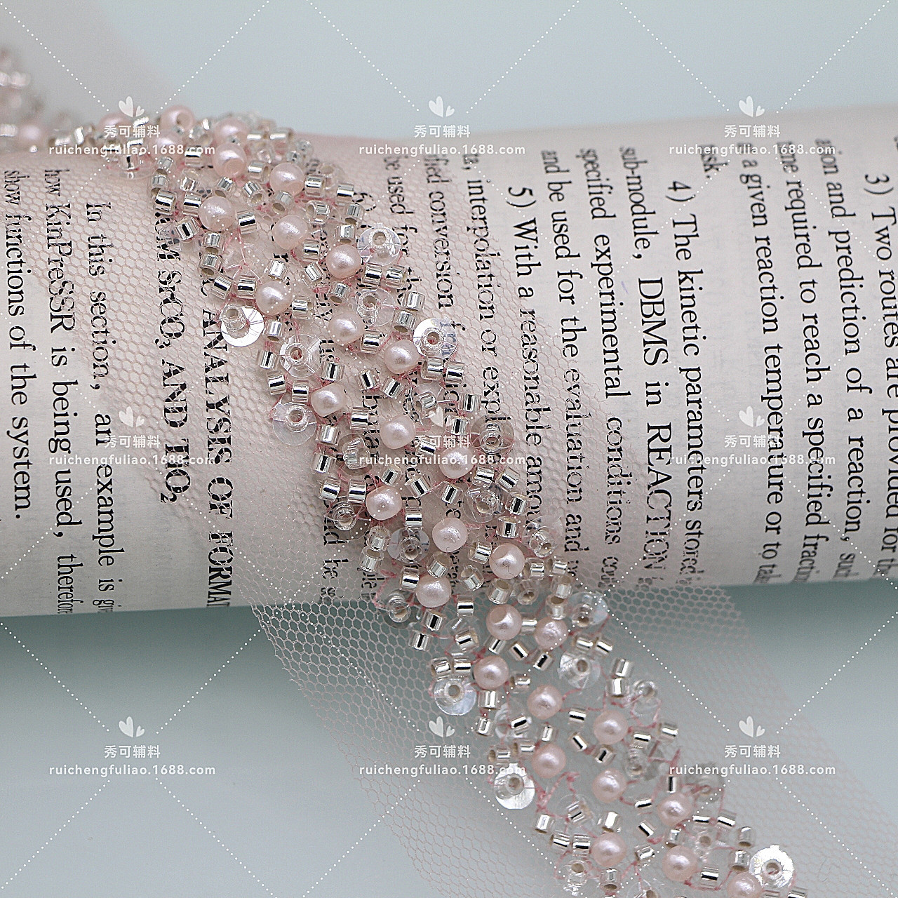 [尺寸]:米色和粉色总宽5厘米 钉珠部分宽1.8厘米