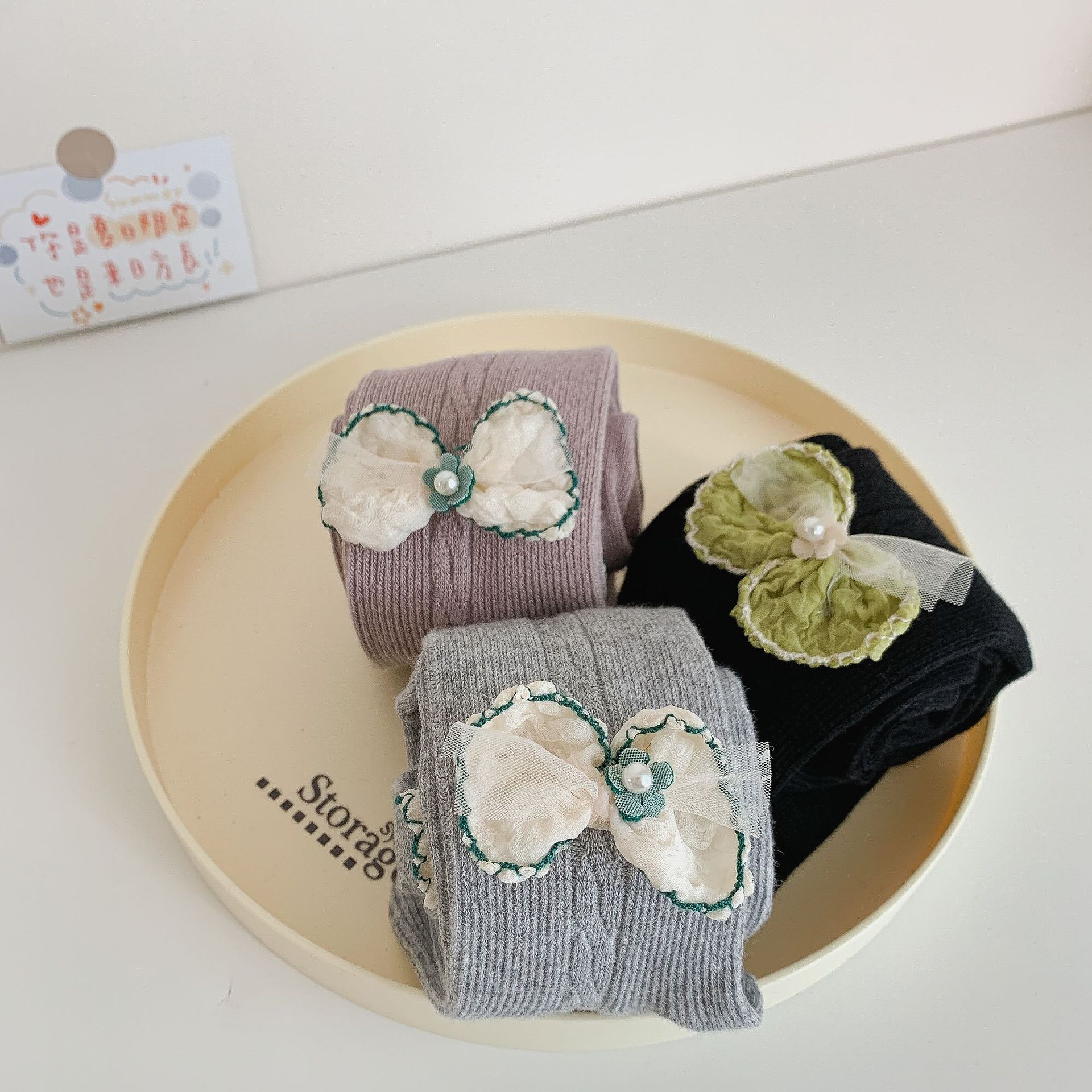 2023 봄 새로운 어린이 팬티 스타킹 귀여운 레이스 활 소녀 팬티 스타킹 레깅스 면 한국 팬티 스타킹스토어 가기