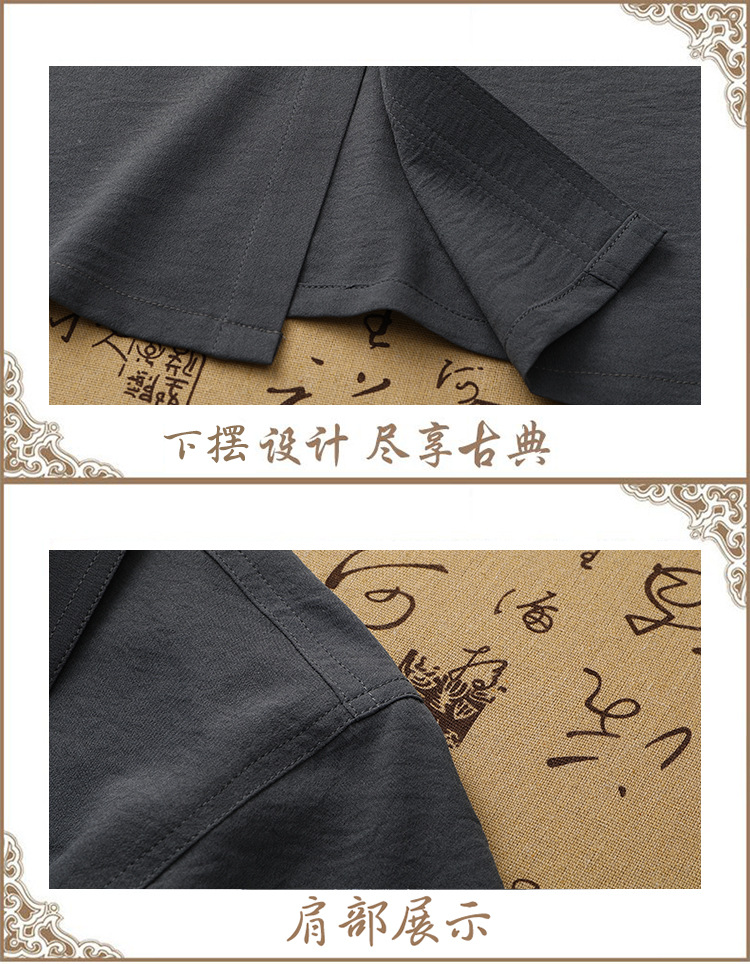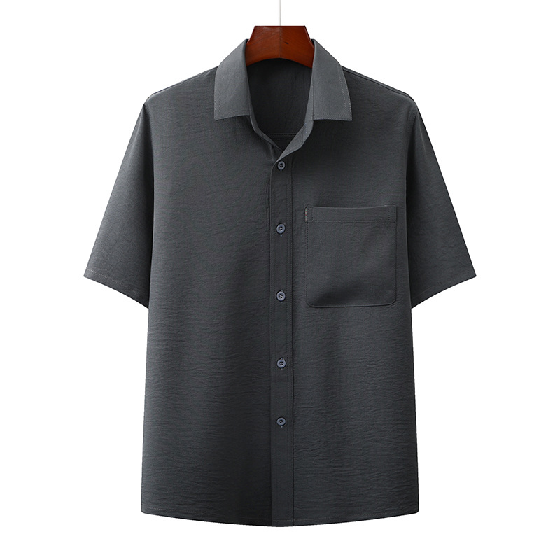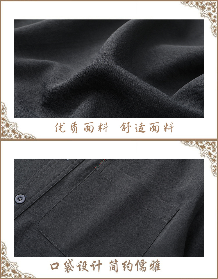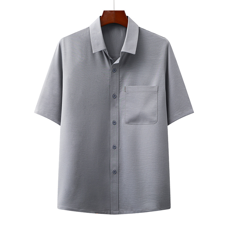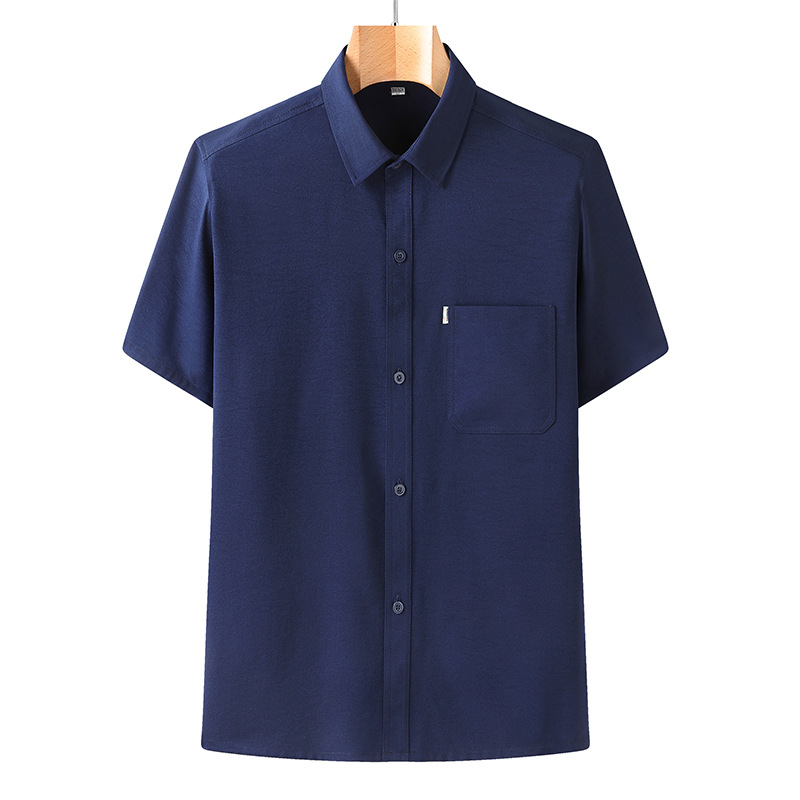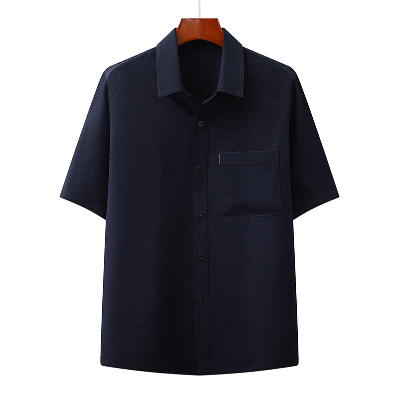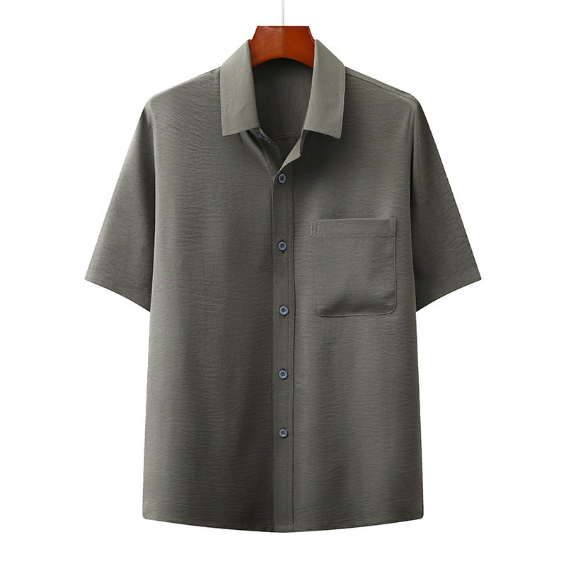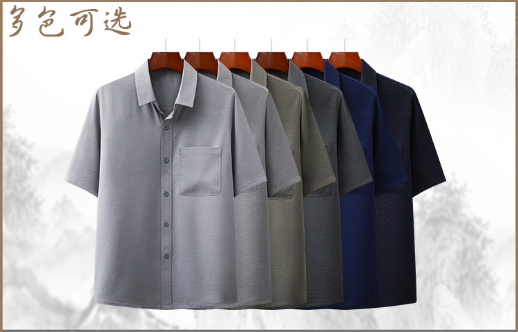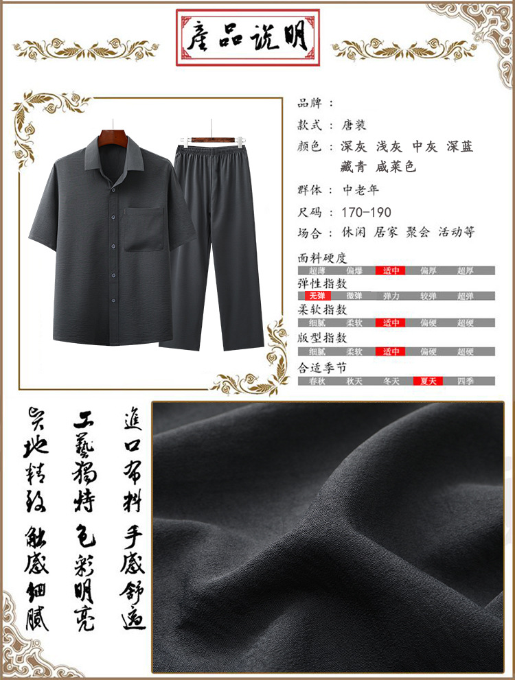 도매 재고 중년 남자의 반팔 셔츠 세트 단색 옷깃 2 종 긴 바지 노인 위 옷