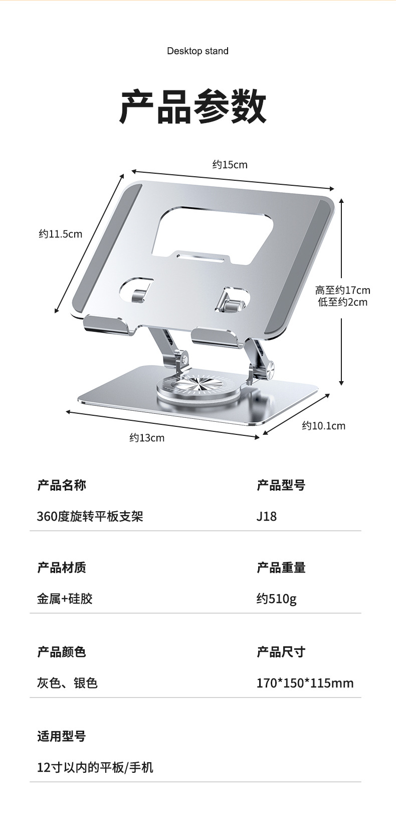 • J18 실버 [회전 가능 + 알루미늄 합금 소재]