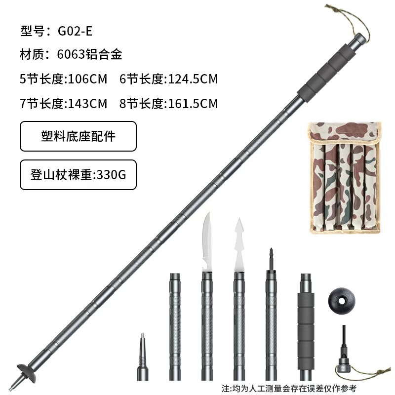 2. 妥善存放:收纳时确保刀具完全收回并锁定,登山杖折叠后放在干燥通风处,避免阳光暴晒或接触腐蚀性液体(如雨水、油污),防止铝合金杖身氧化。