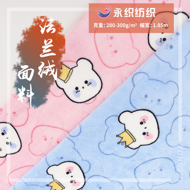 폴리 에스터 양면 플란넬 크라운 베어 인쇄 직물 아기 성인 가정 의류 잠옷 담요 베개 도매스토어 가기