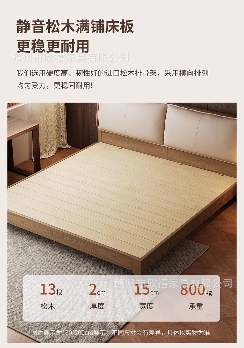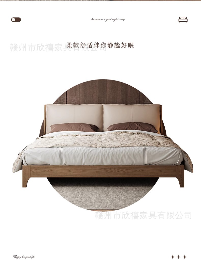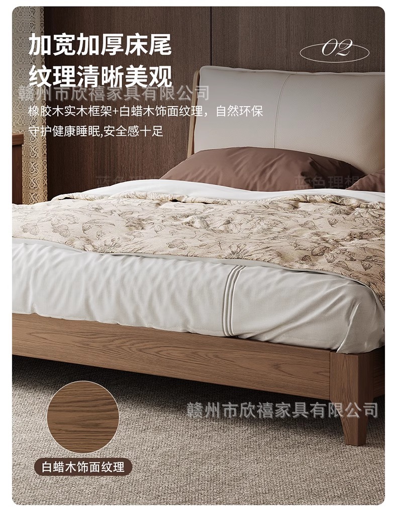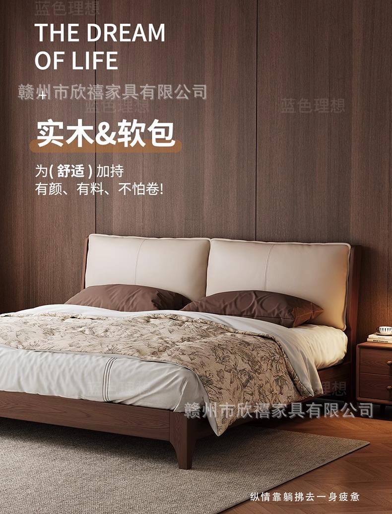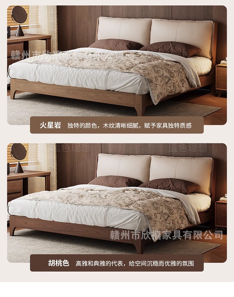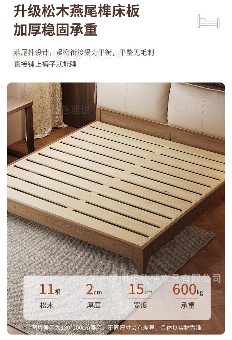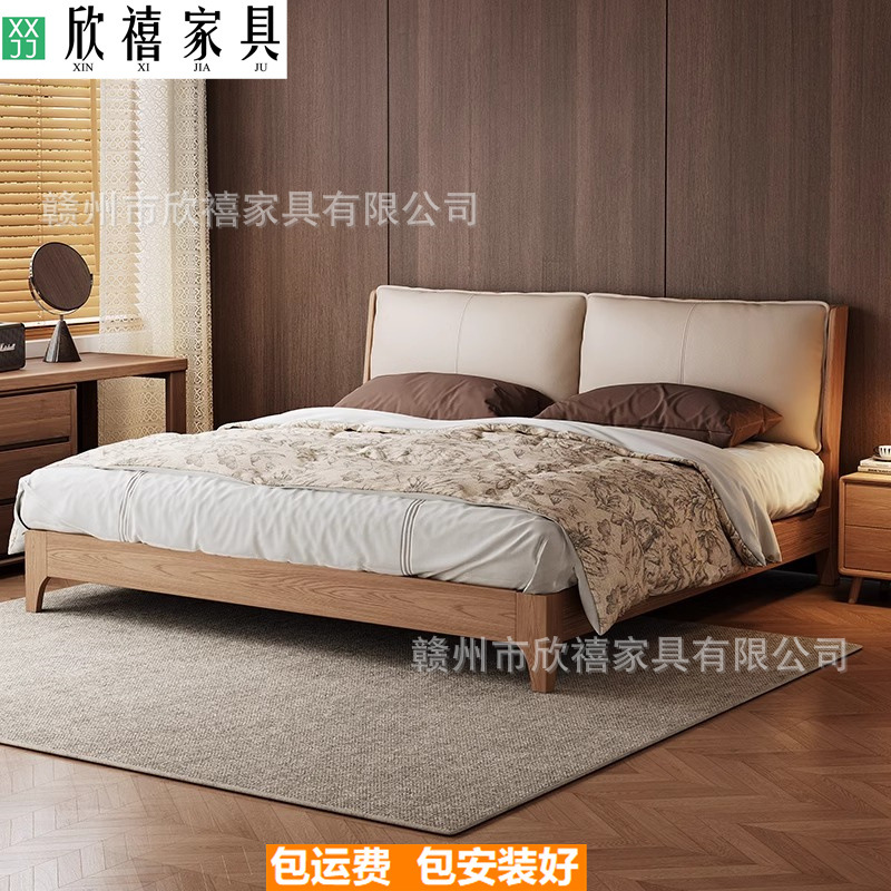 화이트 애쉬 원목 침대 호두색 더블 침대 소형 아파트 북유럽 모던 심플 1.8M 소프트 패브릭 침대 수납 침대
