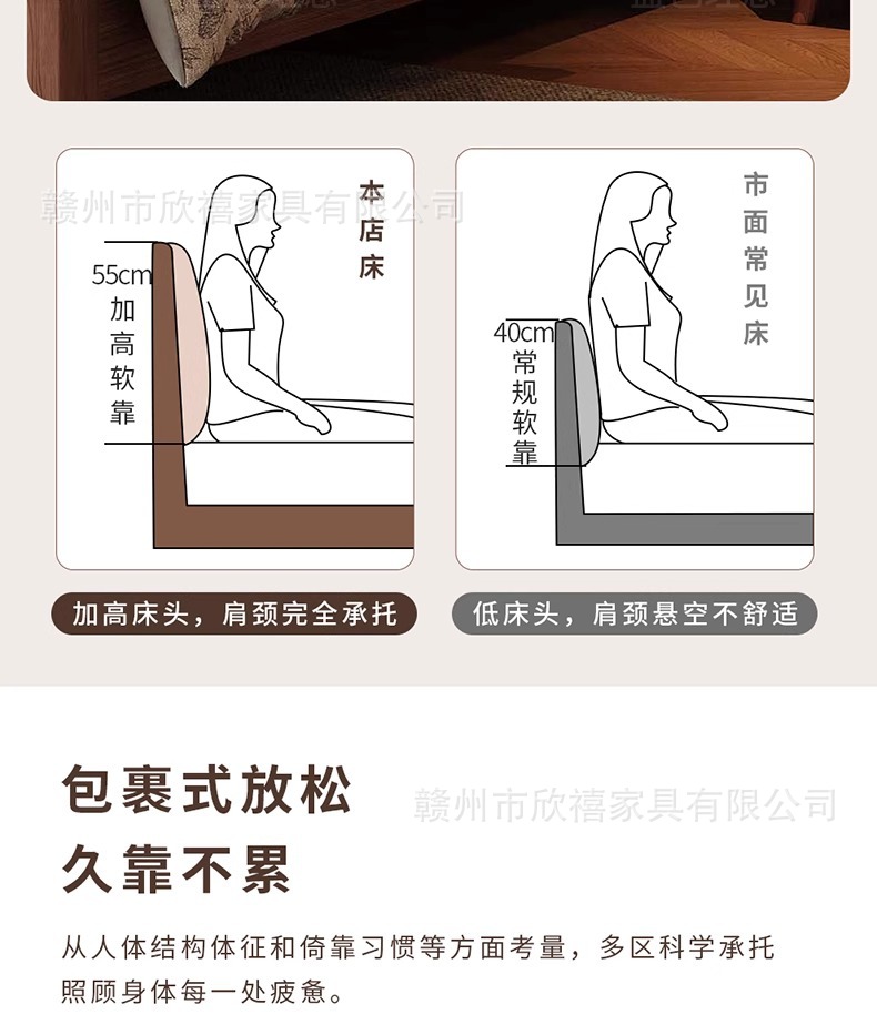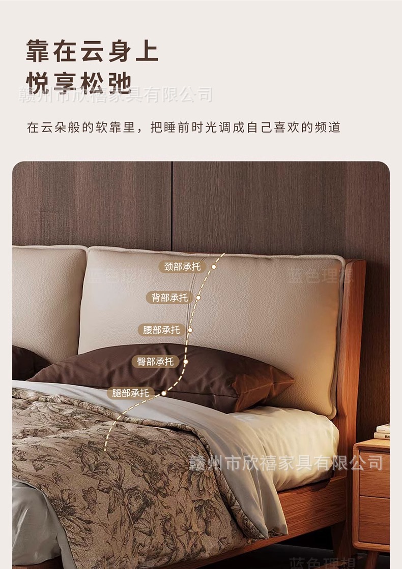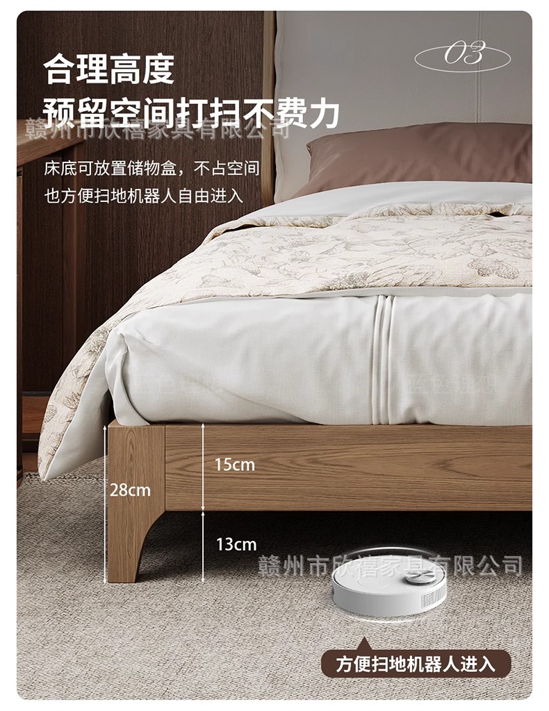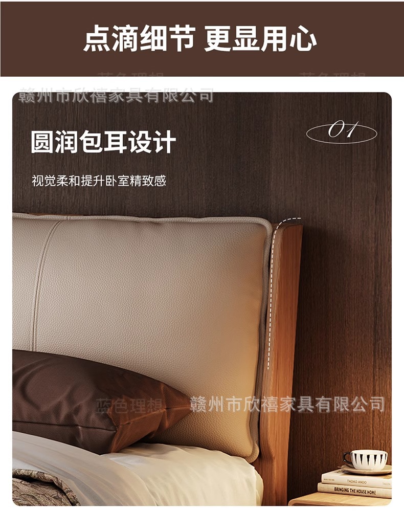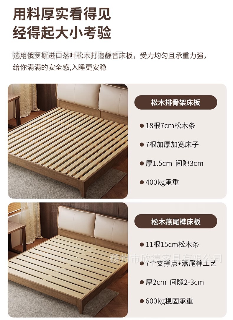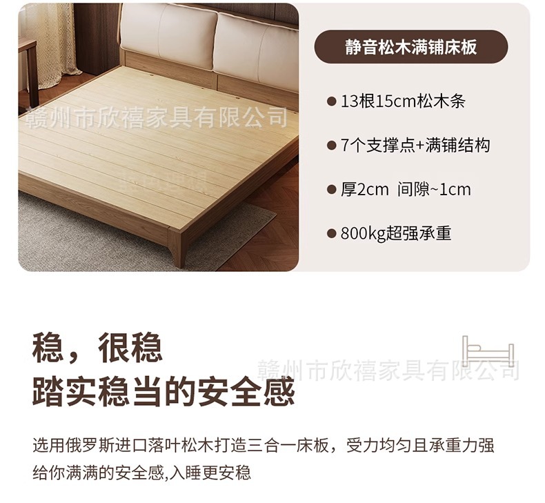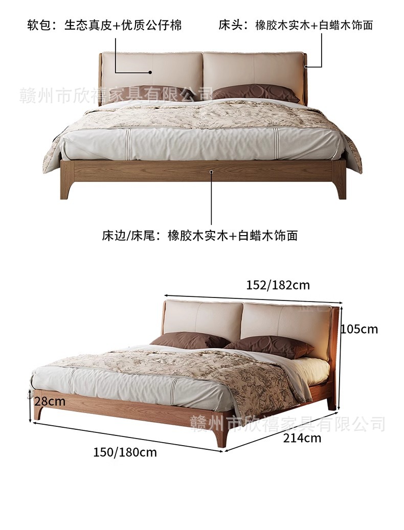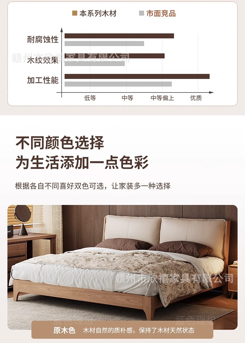 화이트 애쉬 원목 침대 호두색 더블 침대 소형 아파트 북유럽 모던 심플 1.8M 소프트 패브릭 침대 수납 침대