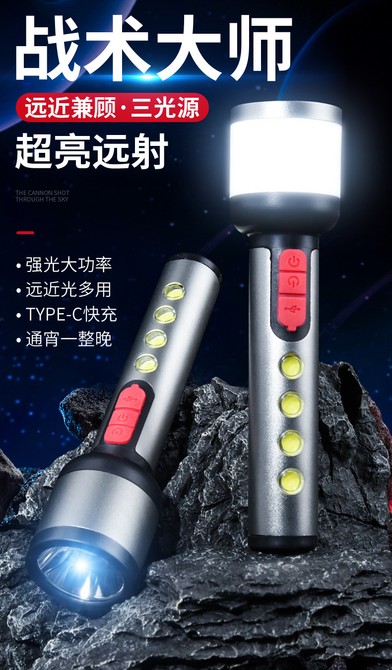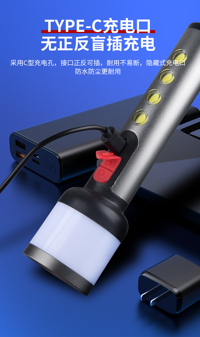 방수 강한 빛 다기능 LED 휴대용 고정 초점 소형 손전등 USB 충전식 알루미늄 합금 작업등 측면 조명스토어 가기