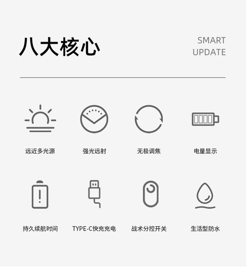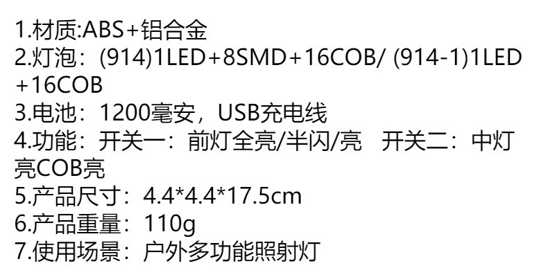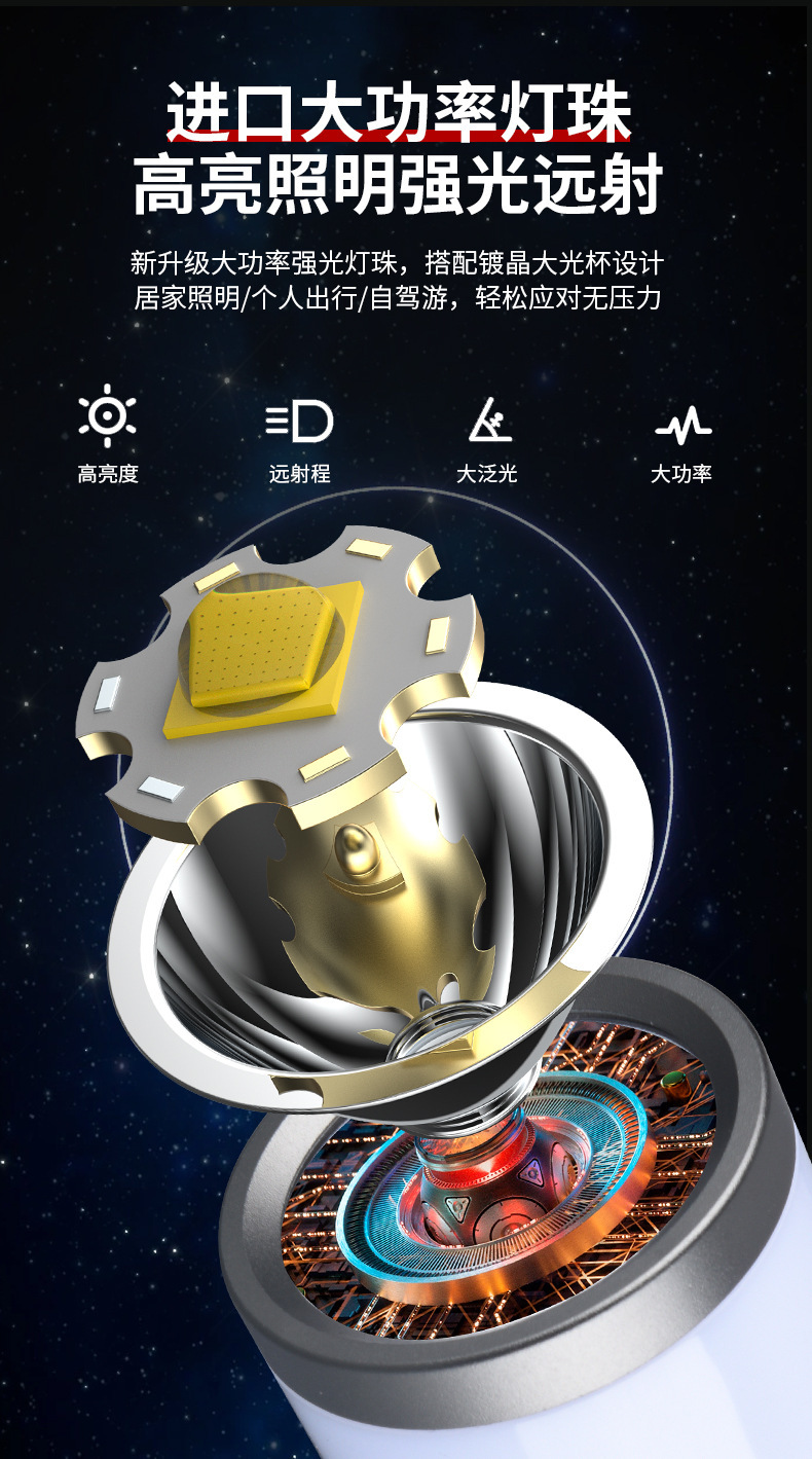 방수 강한 빛 다기능 LED 휴대용 고정 초점 소형 손전등 USB 충전식 알루미늄 합금 작업등 측면 조명