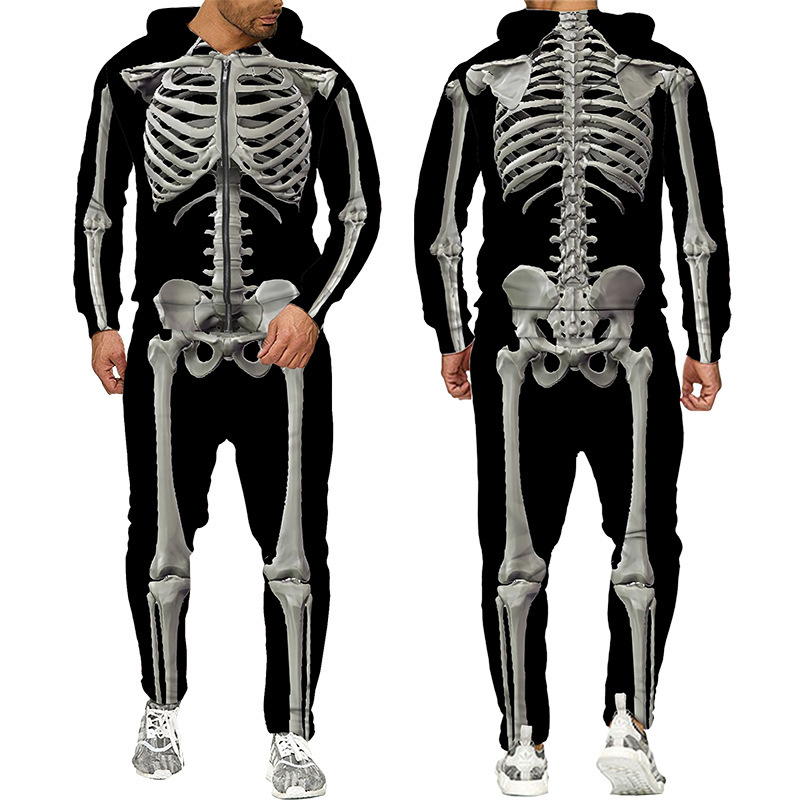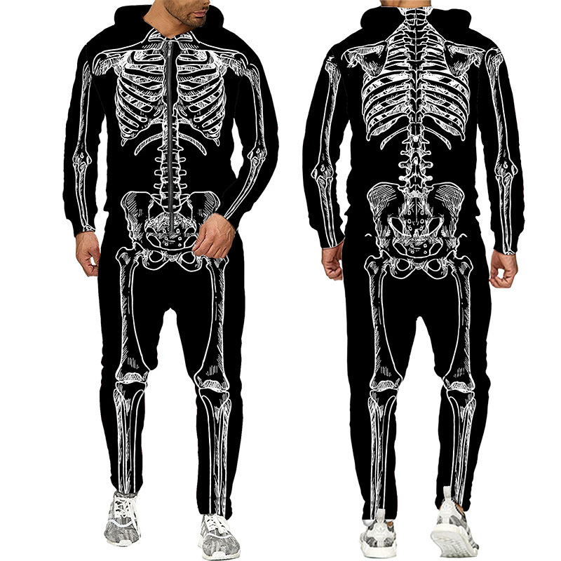가을과 겨울 새로운 스웨터 해골 3D 운동복 남자의 야외 지퍼 세트 공장 직접