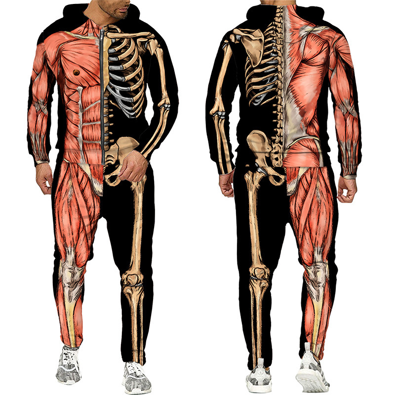 가을과 겨울 새로운 스웨터 해골 3D 운동복 남자의 야외 지퍼 세트 공장 직접스토어 가기