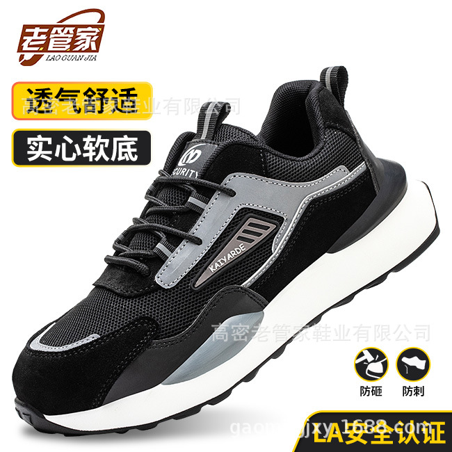 노인 관리자용 안전화, 충격 방지, 관통 방지, 작업용, 가볍고 통기성, 내마모성, 단단한 밑창, 사계절용, 건설 현장 안전화