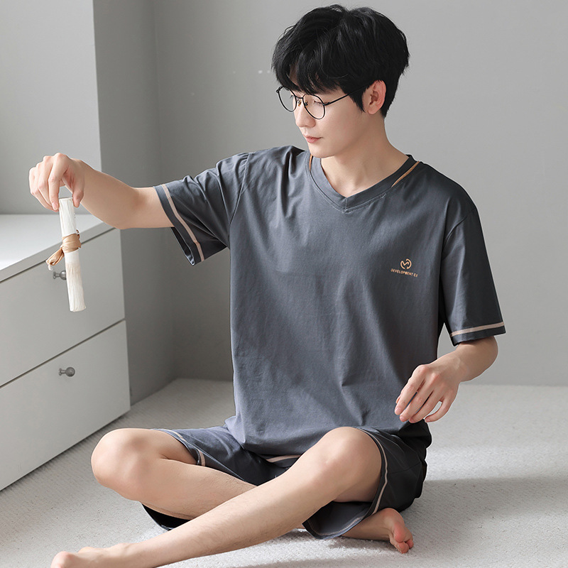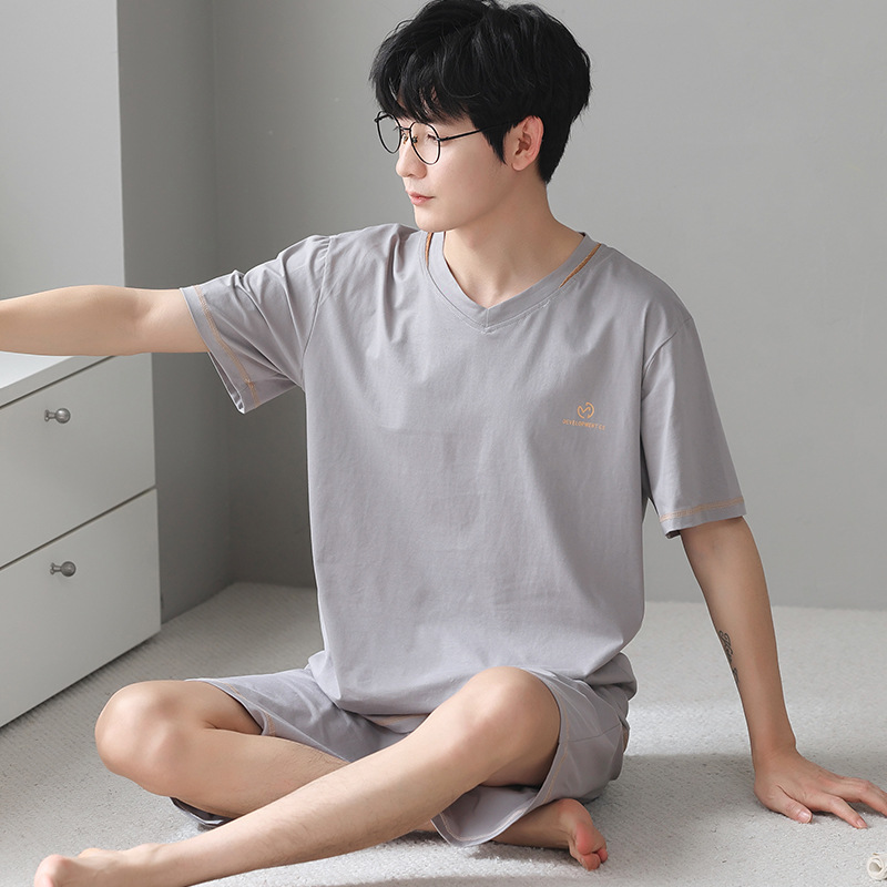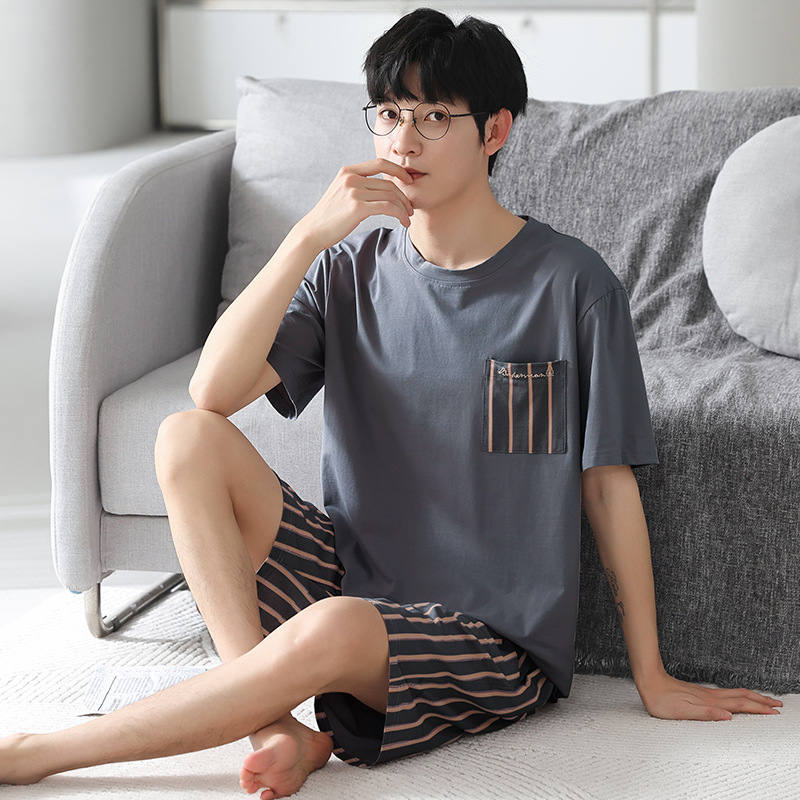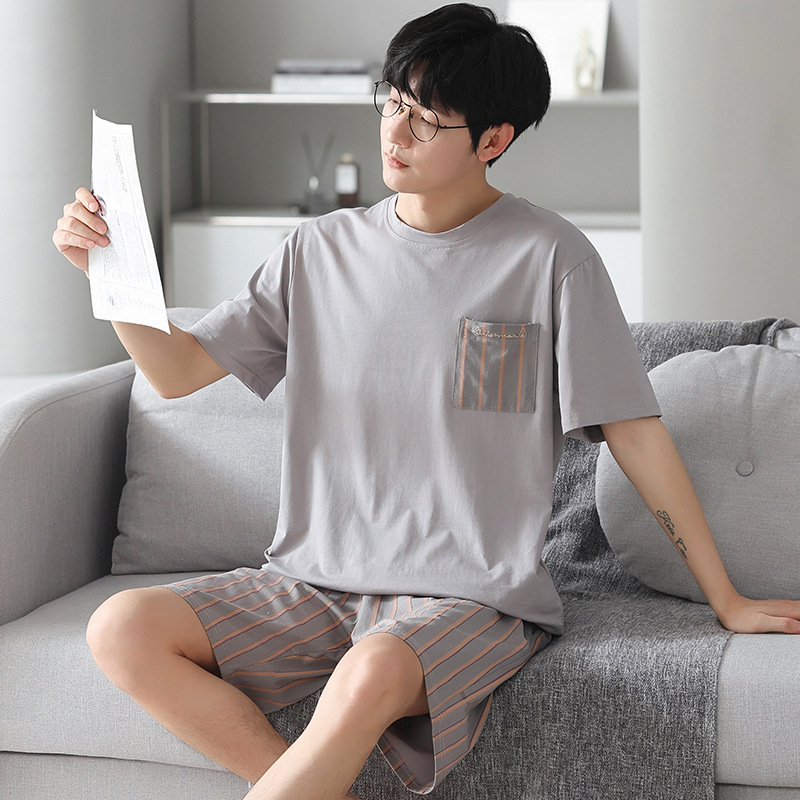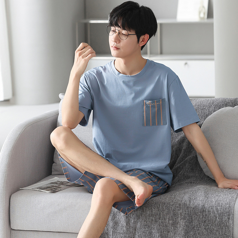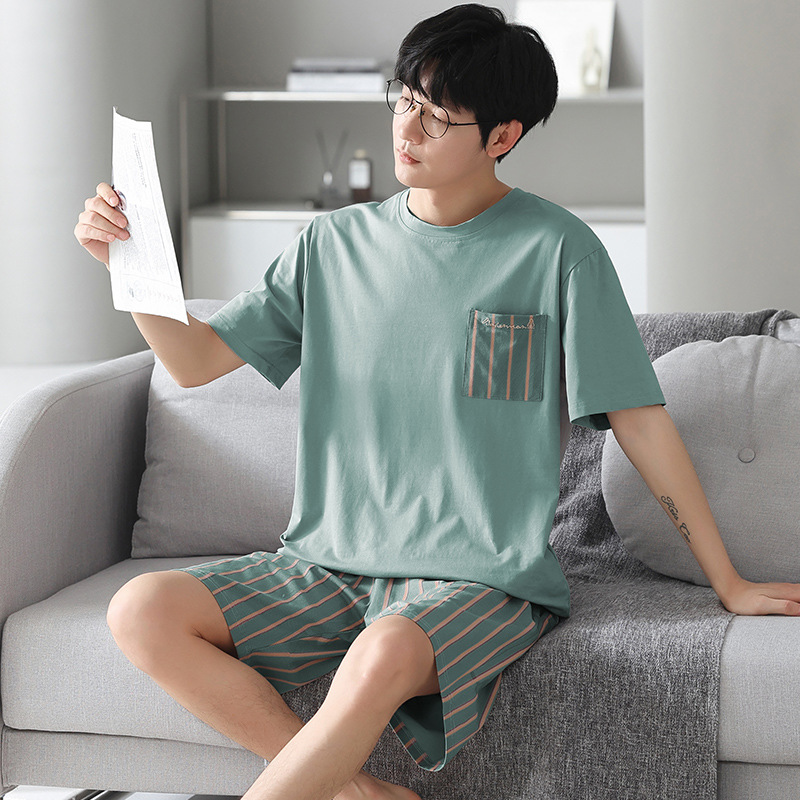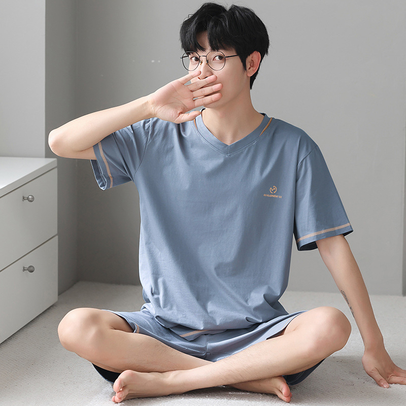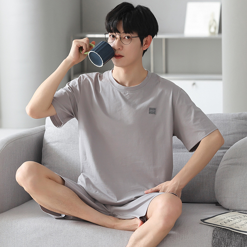 남성용 모달 코튼 실크 홈웨어 여름 얇은 반팔 반바지 플러스 사이즈 잠옷 남성용 심플 캐주얼스토어 가기