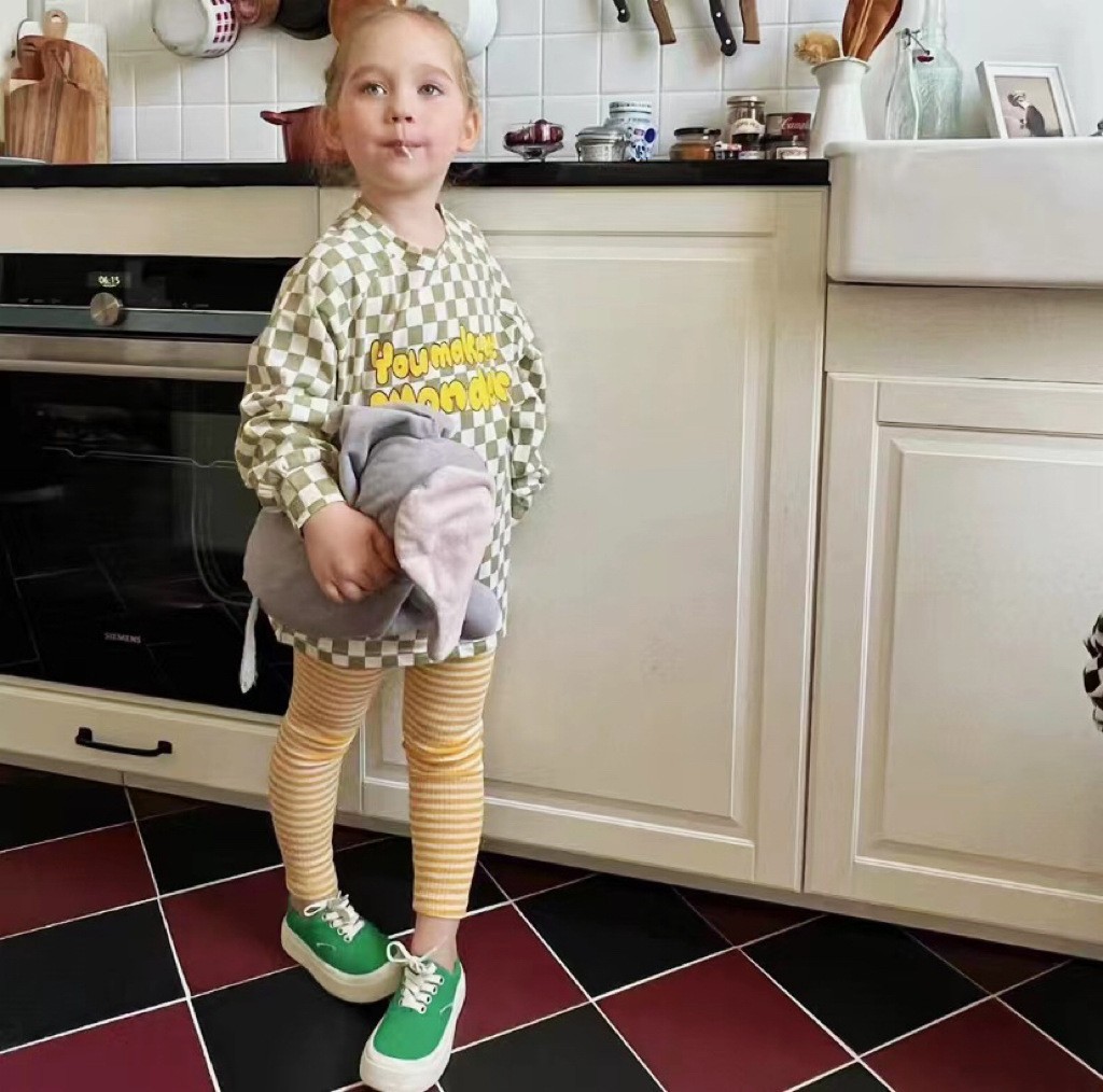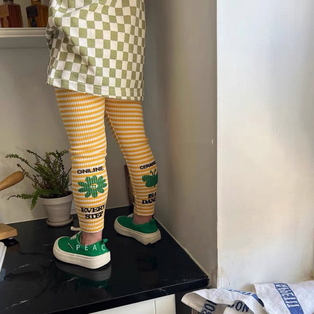 23SS 아동용 새 여아 스트라이프 캐주얼 팬츠 및 레깅스 재고 있음스토어 가기