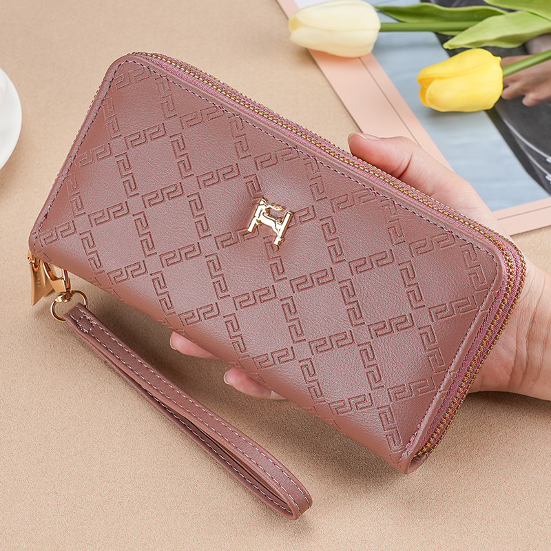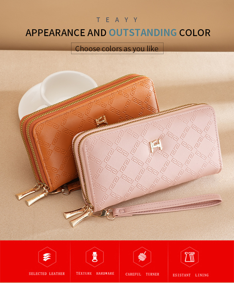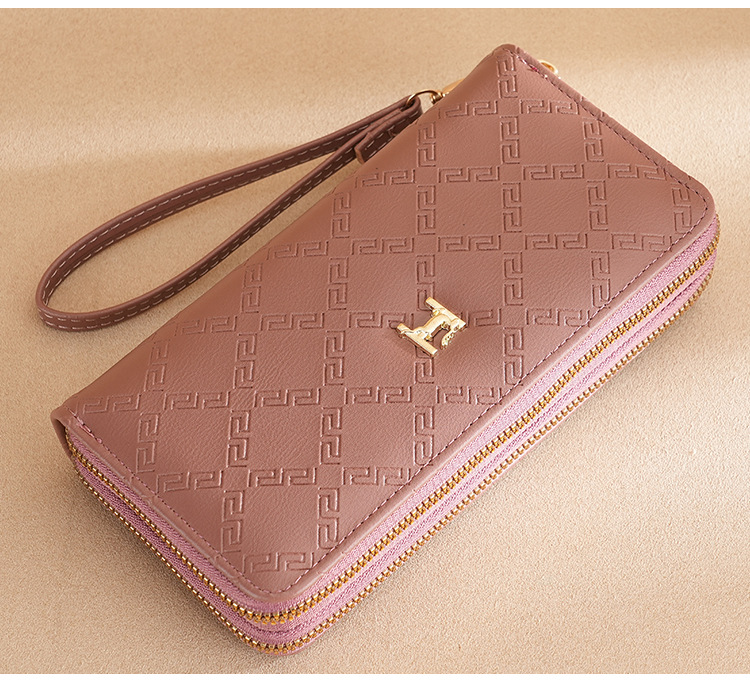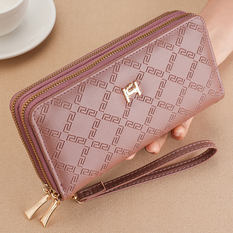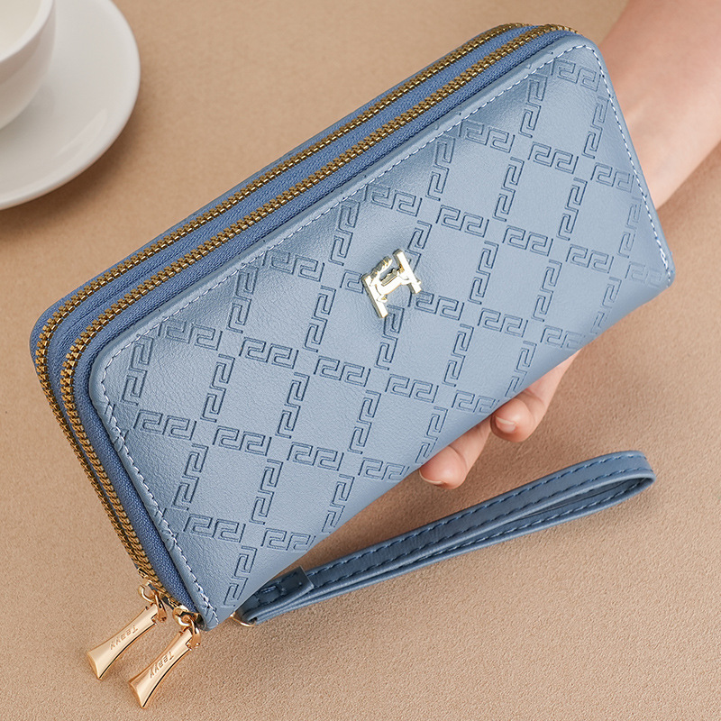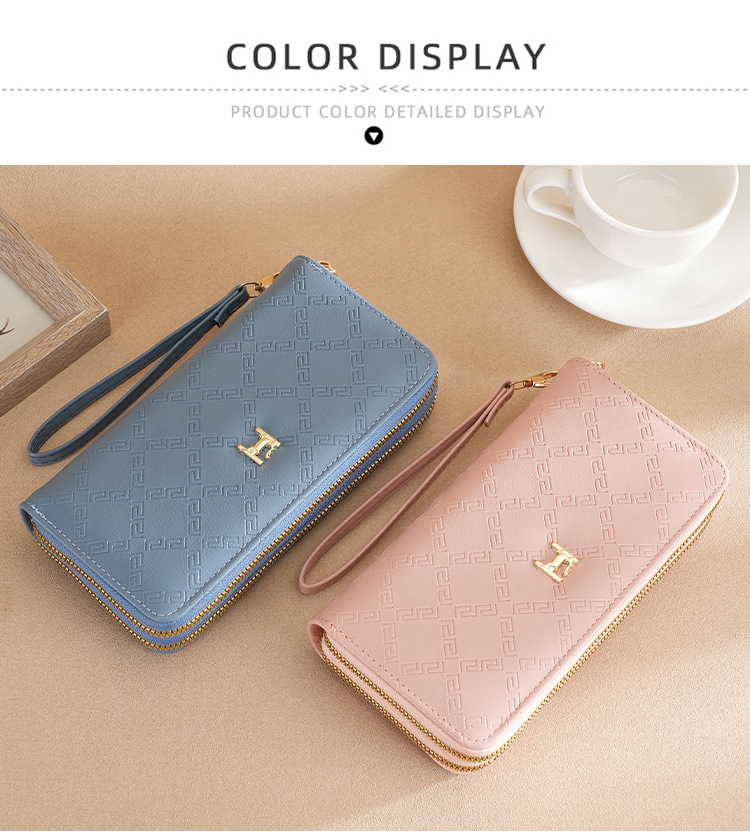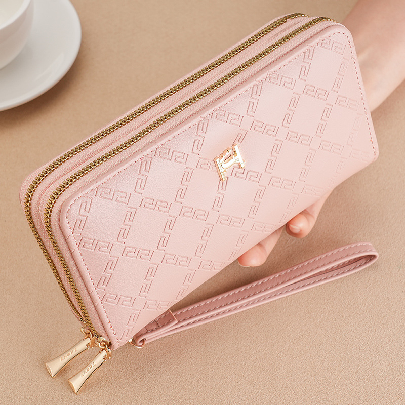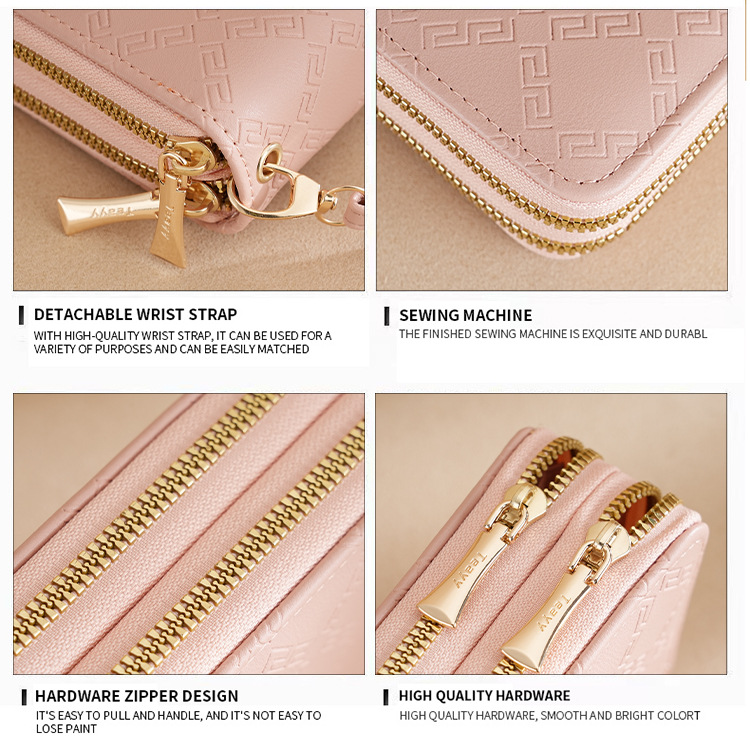 여성용 지갑 더블 지퍼 지갑 핸드폰 가방 학생용 지갑 대용량 클러치백 부드러운 동전 지갑 다용도 수납