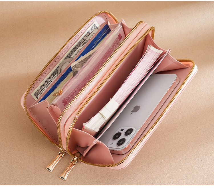 여성용 지갑 더블 지퍼 지갑 핸드폰 가방 학생용 지갑 대용량 클러치백 부드러운 동전 지갑 다용도 수납스토어 가기