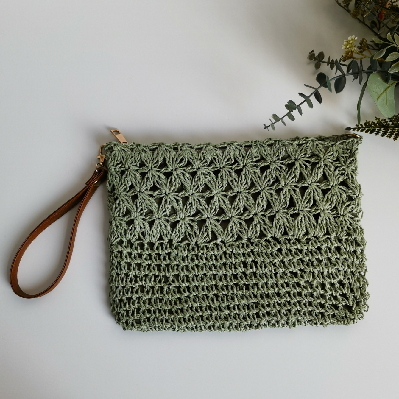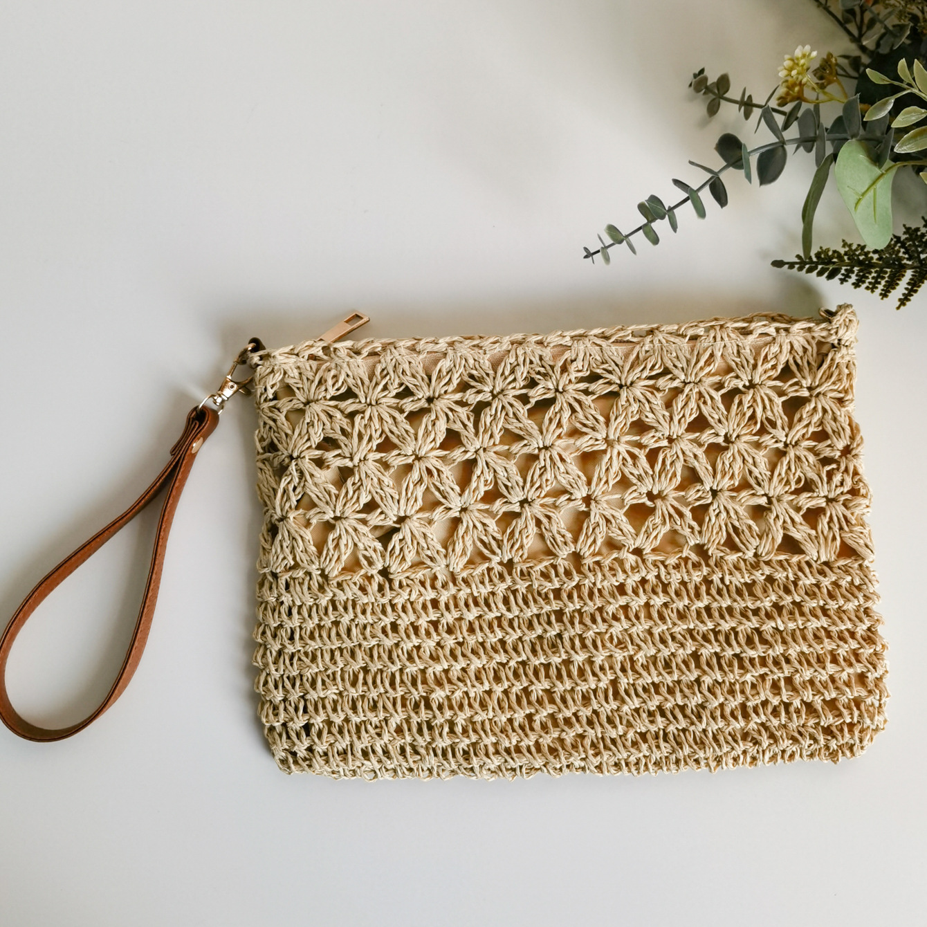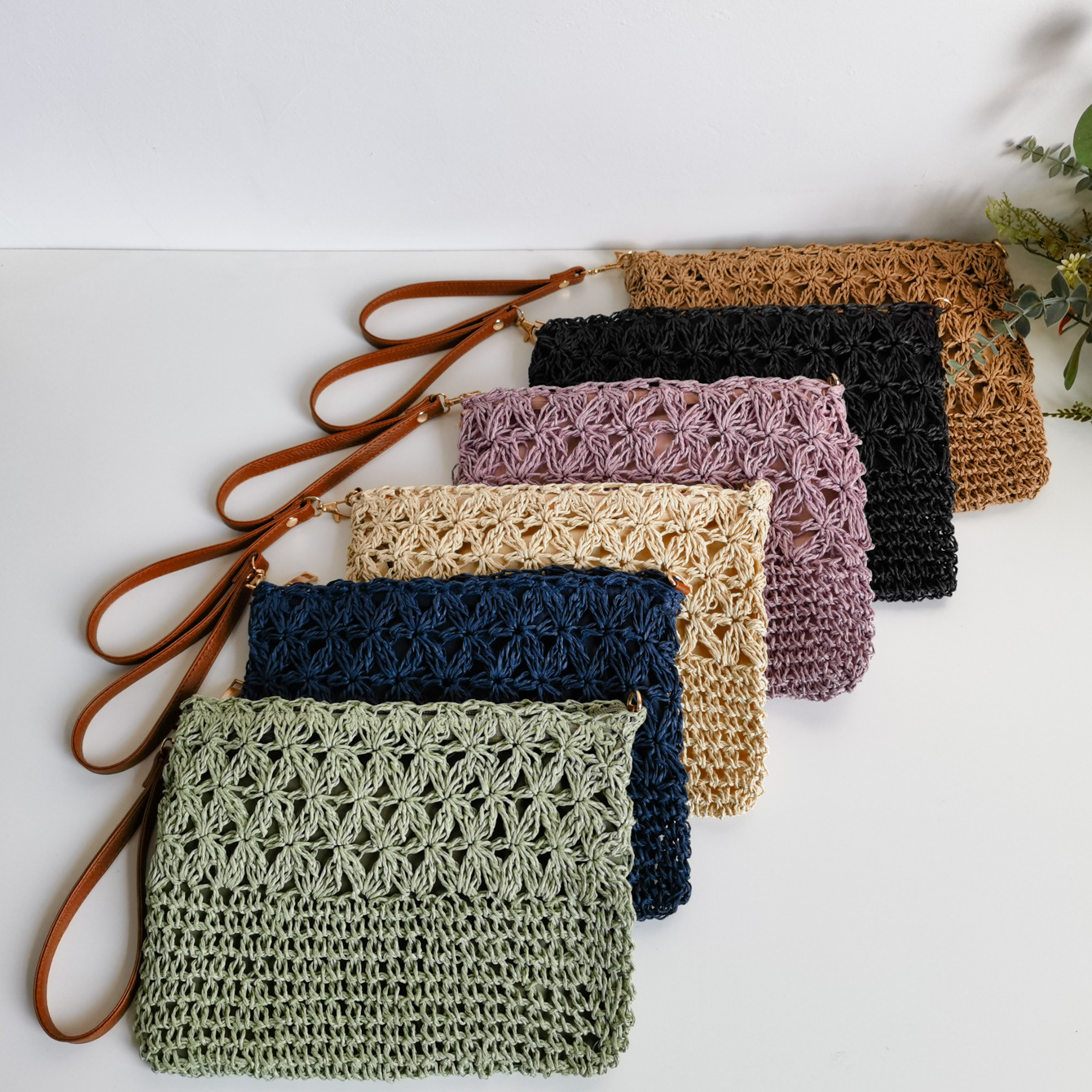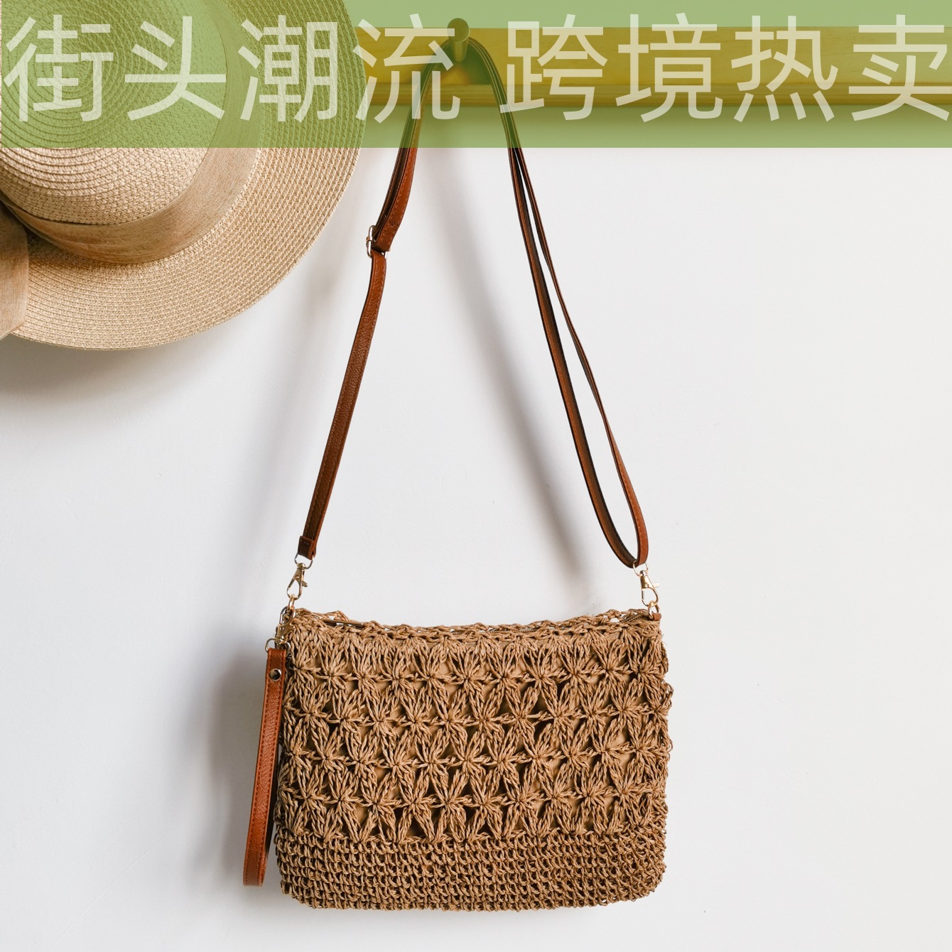 수제 밀짚 짠 중공 꽃 크로스 바디 백스토어 가기