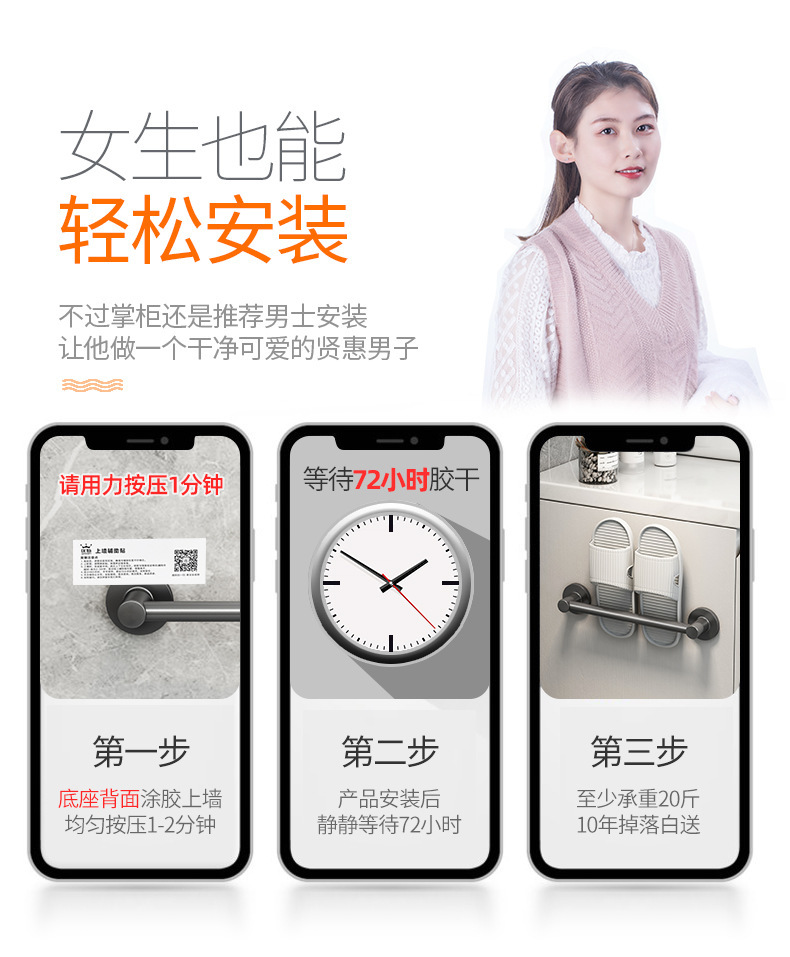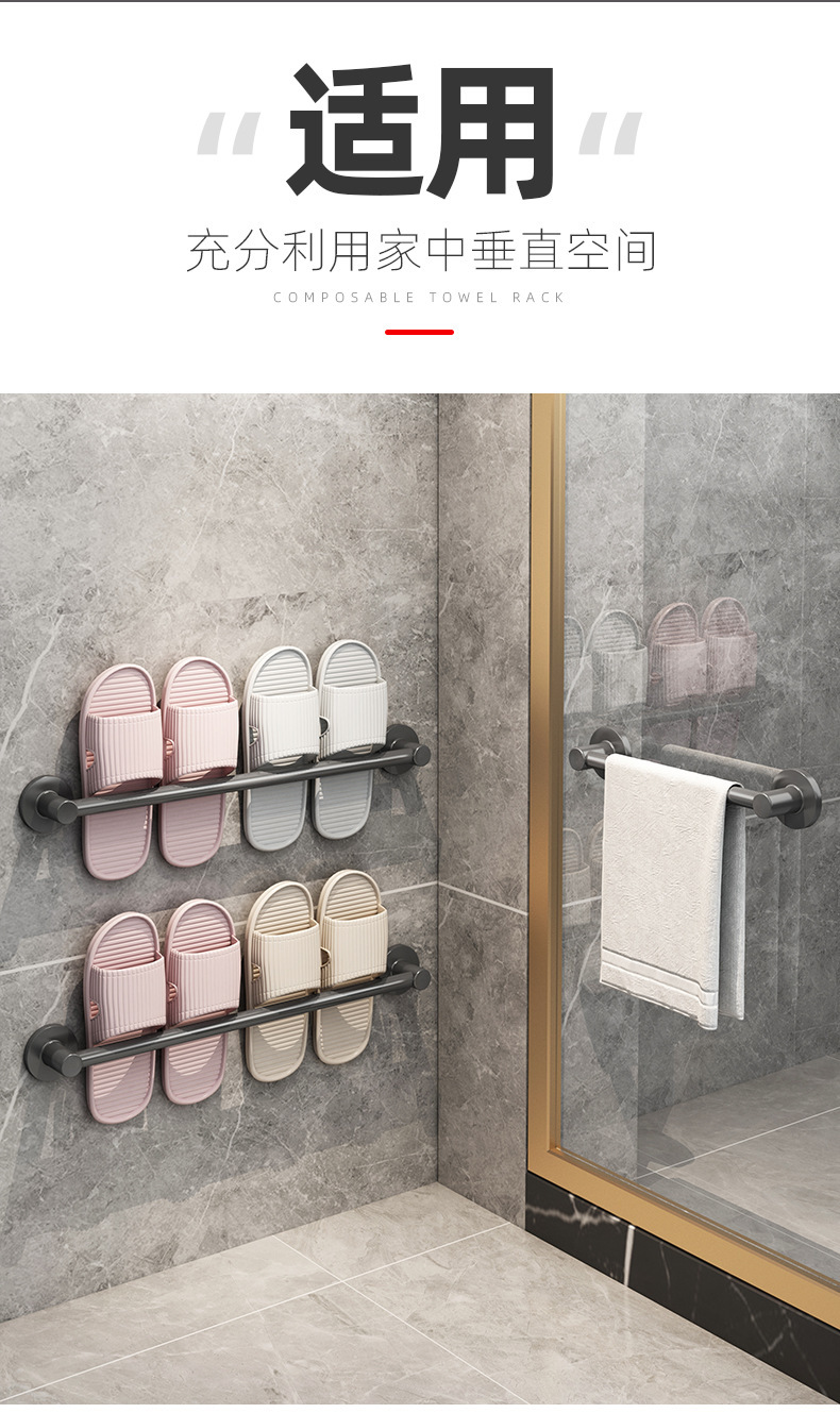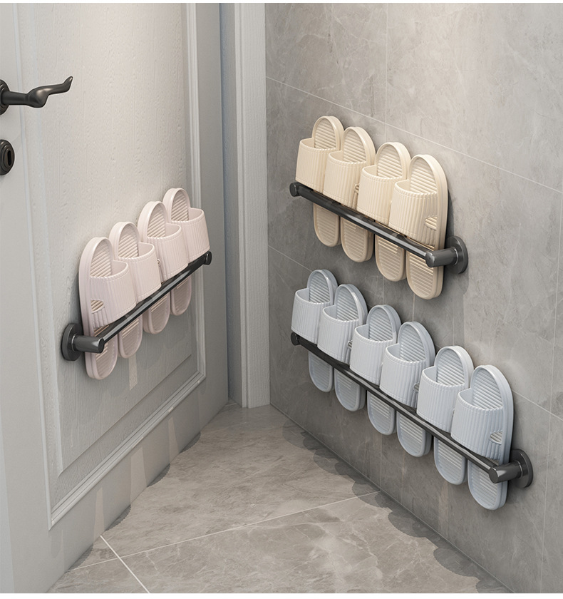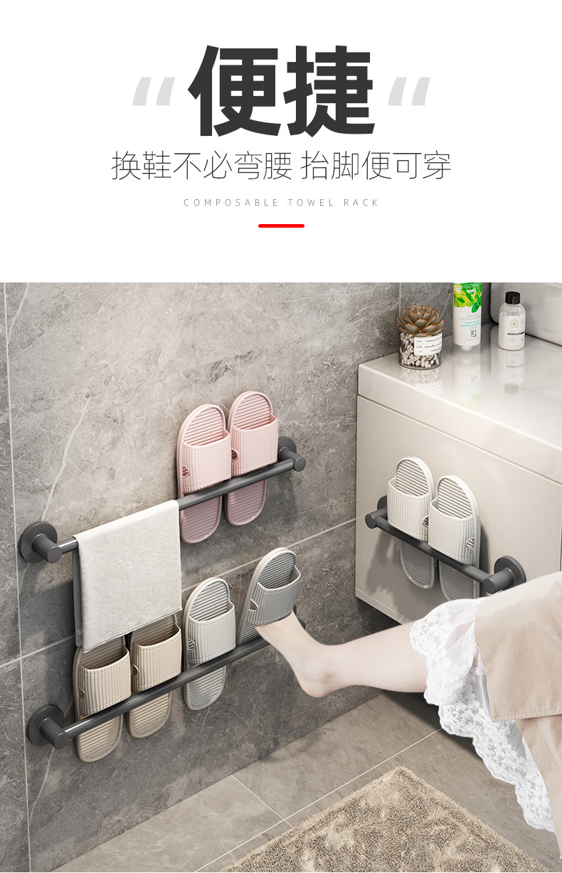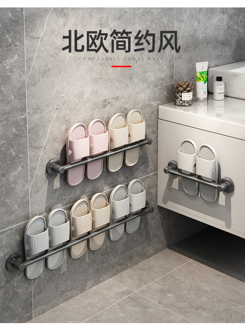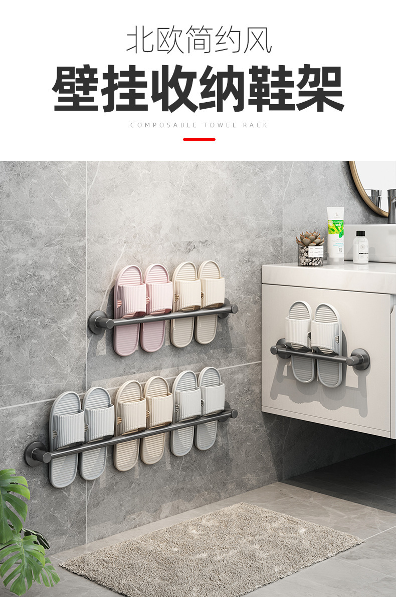 욕실 슬리퍼 랙 배수 랙 펀치 프리 벽걸이 화장실 신발 수건 보관 랙 신발장 보관 건 애쉬