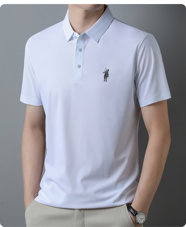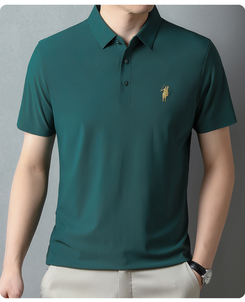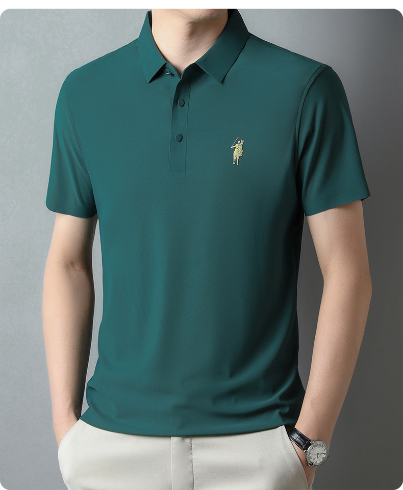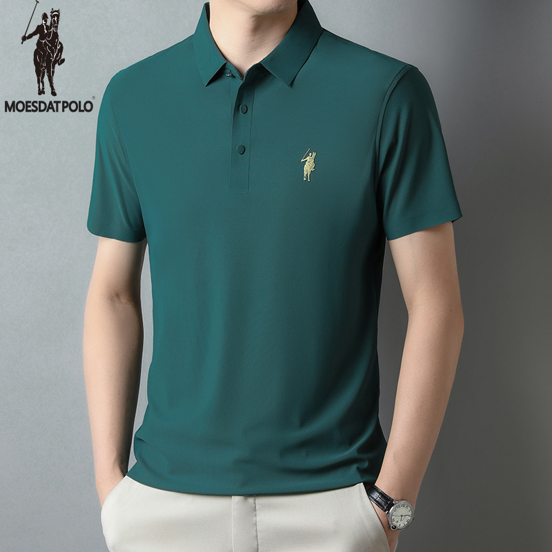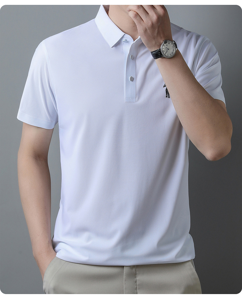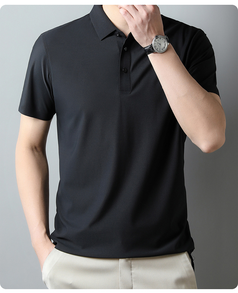 아이스 실크 추적 폴로 셔츠 남자의 반팔 티셔츠 여름 비즈니스 얇은 캐주얼 릴 폴 셔츠 느슨한 플러스 사이즈