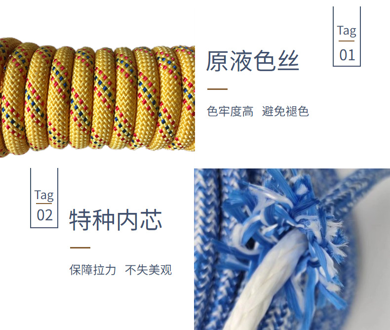 더블 레이어 폴리 에스테르 꼰 로프 폴리 에스테르 포장 폴리머 라운드 로프 스파이더 맨 공중 작업 안전 로프 교수형 바구니 로프스토어 가기