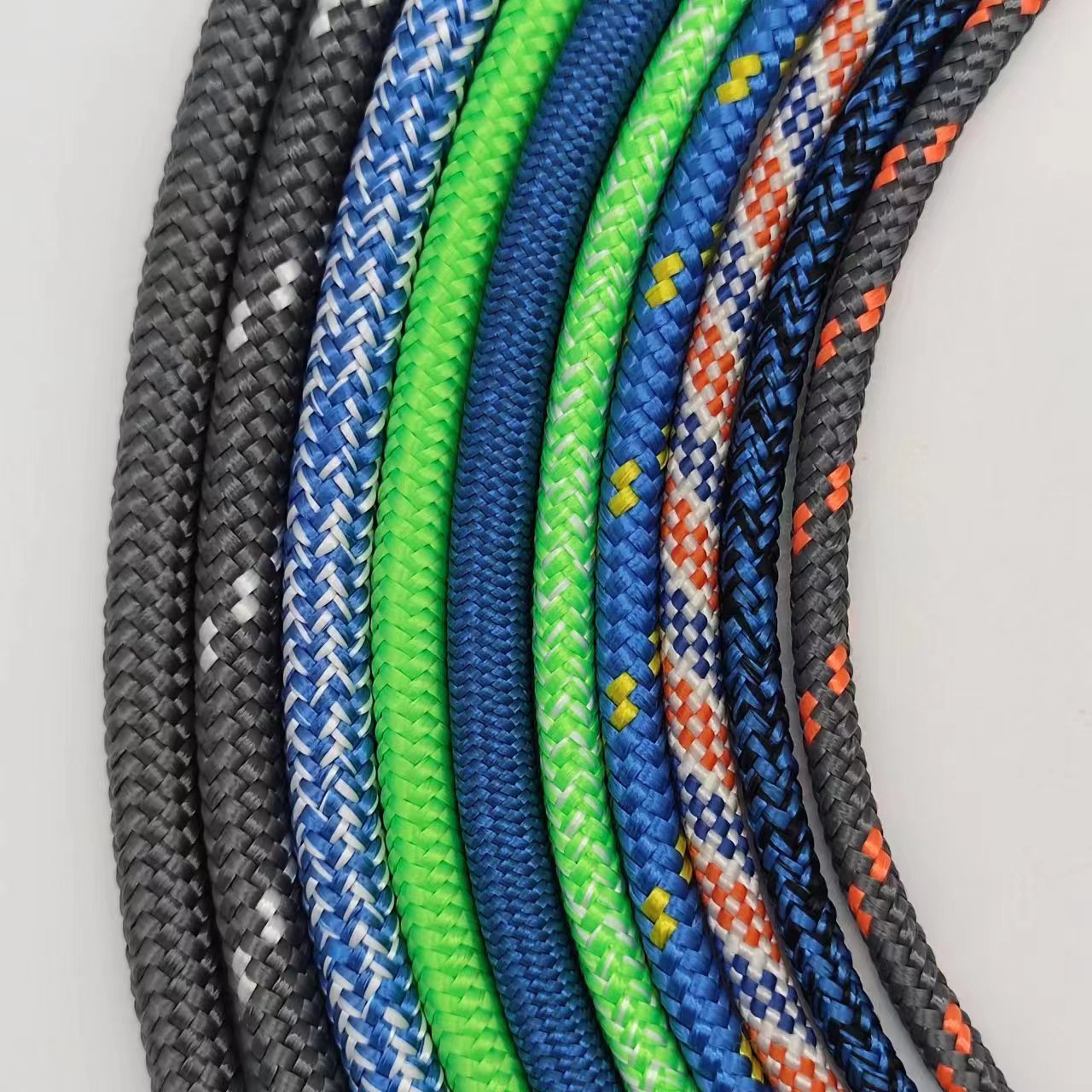 더블 레이어 폴리 에스테르 꼰 로프 폴리 에스테르 포장 폴리머 라운드 로프 스파이더 맨 공중 작업 안전 로프 교수형 바구니 로프