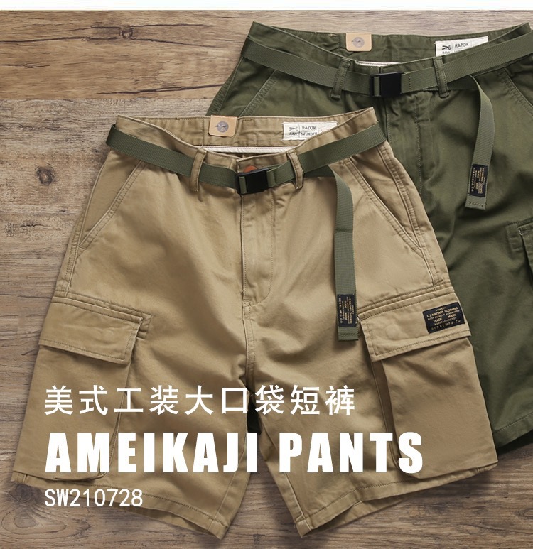 트렌디 브랜드 남성용 여름 툴링 반바지 남성용 해외 무역 바지 트렌디 레트로 느슨한 스트레이트 대형 포켓 캐주얼 바지