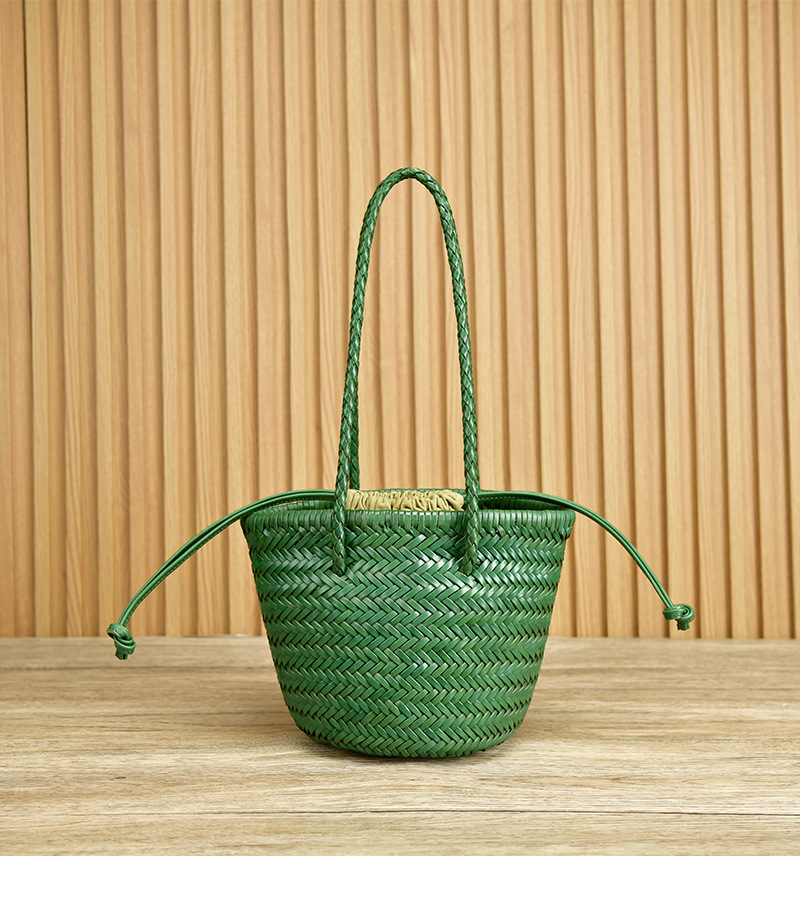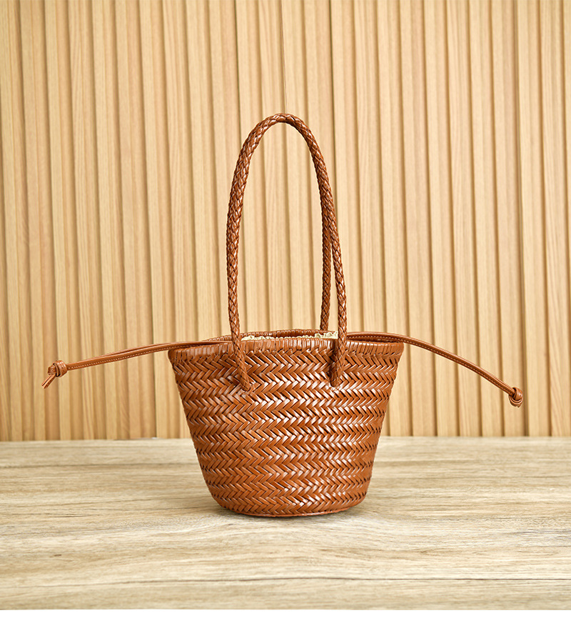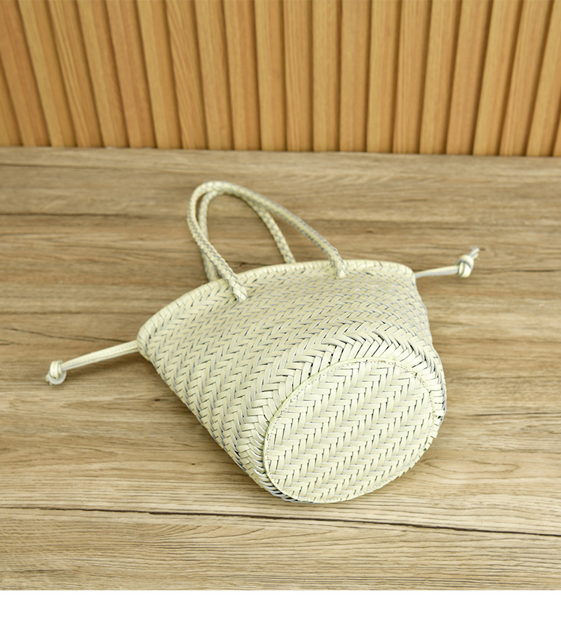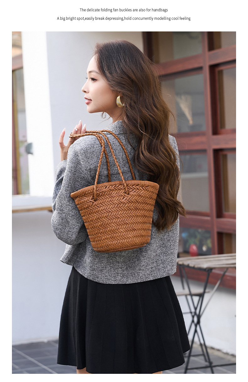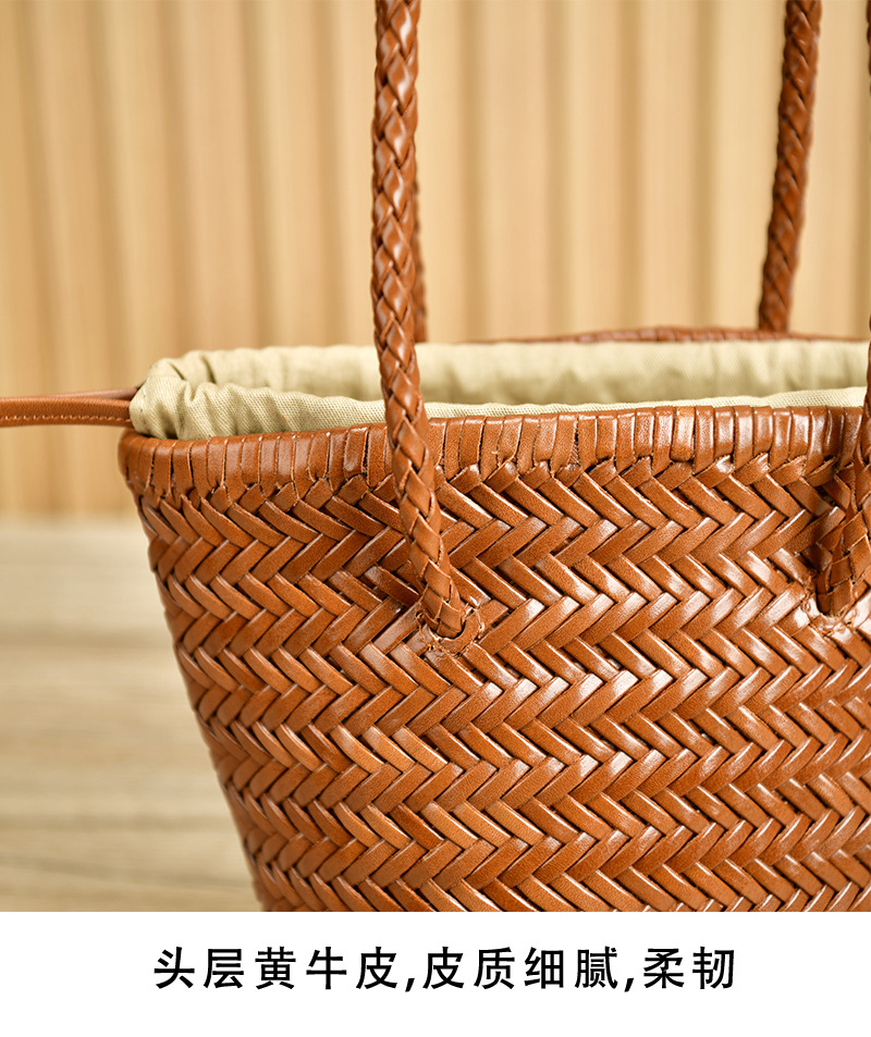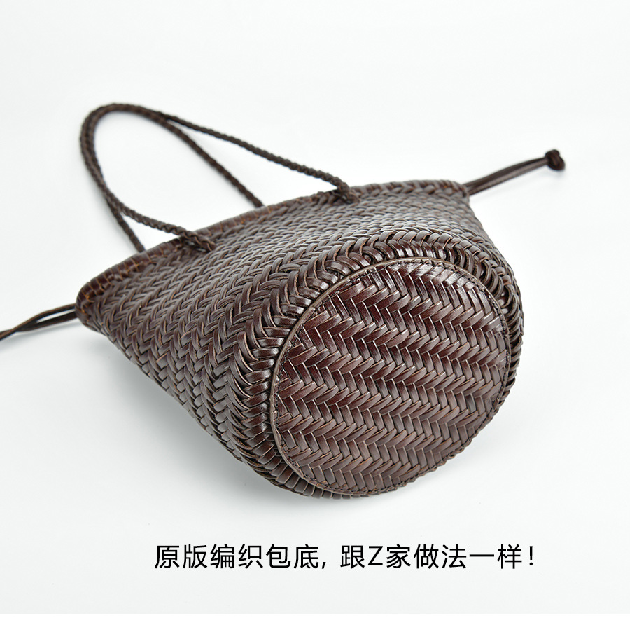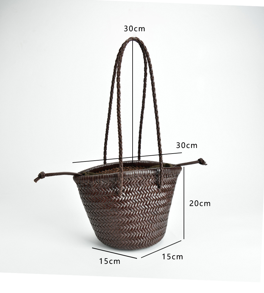 Z 홈 같은 스타일 탑 레이어 소가죽 짠 어깨 가방 빈티지 정품 가죽 수제 야채 바구니 가방 여행 비치 토트 백