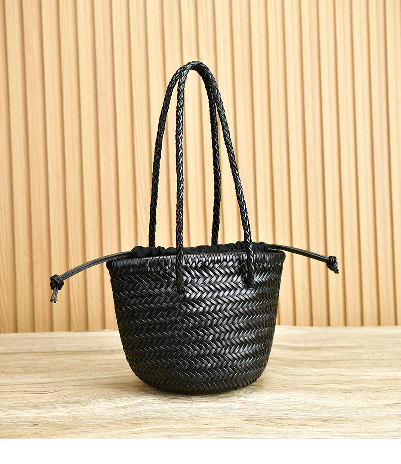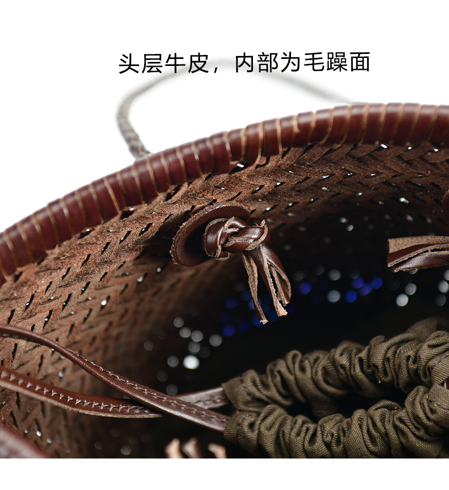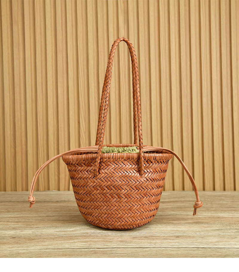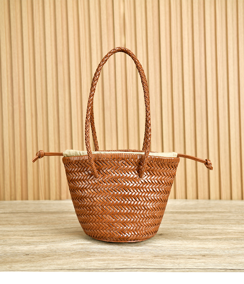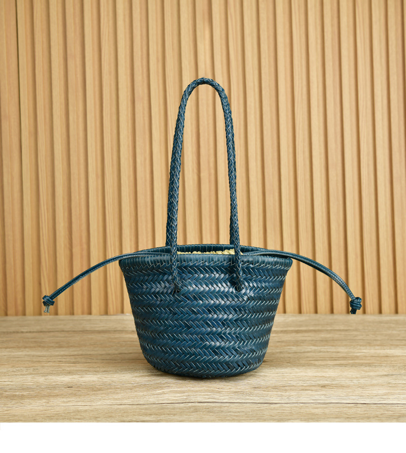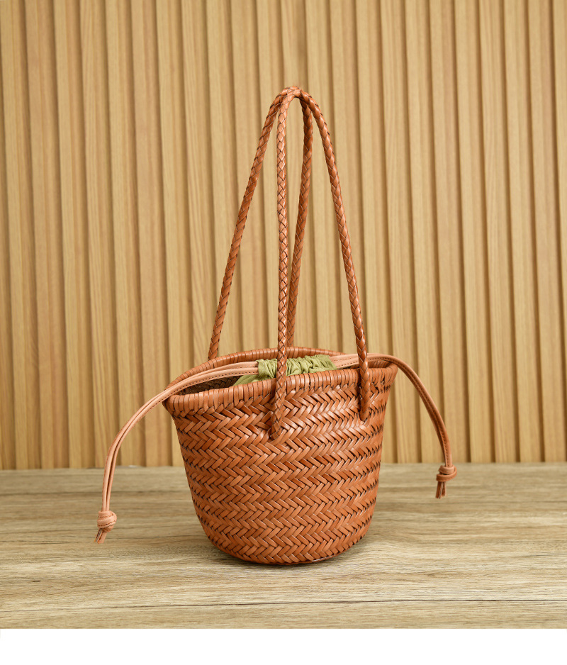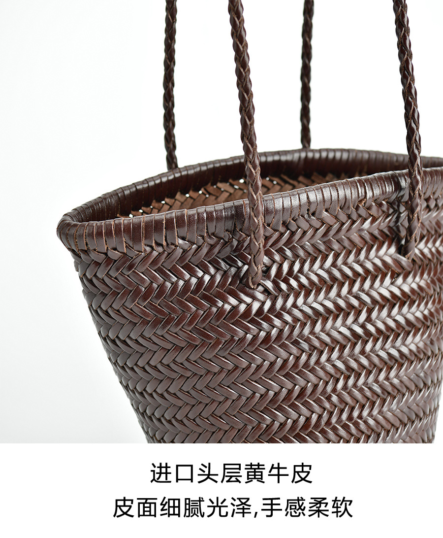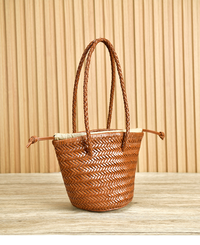 Z 홈 같은 스타일 탑 레이어 소가죽 짠 어깨 가방 빈티지 정품 가죽 수제 야채 바구니 가방 여행 비치 토트 백
