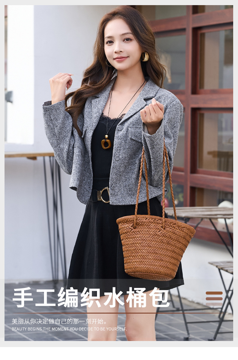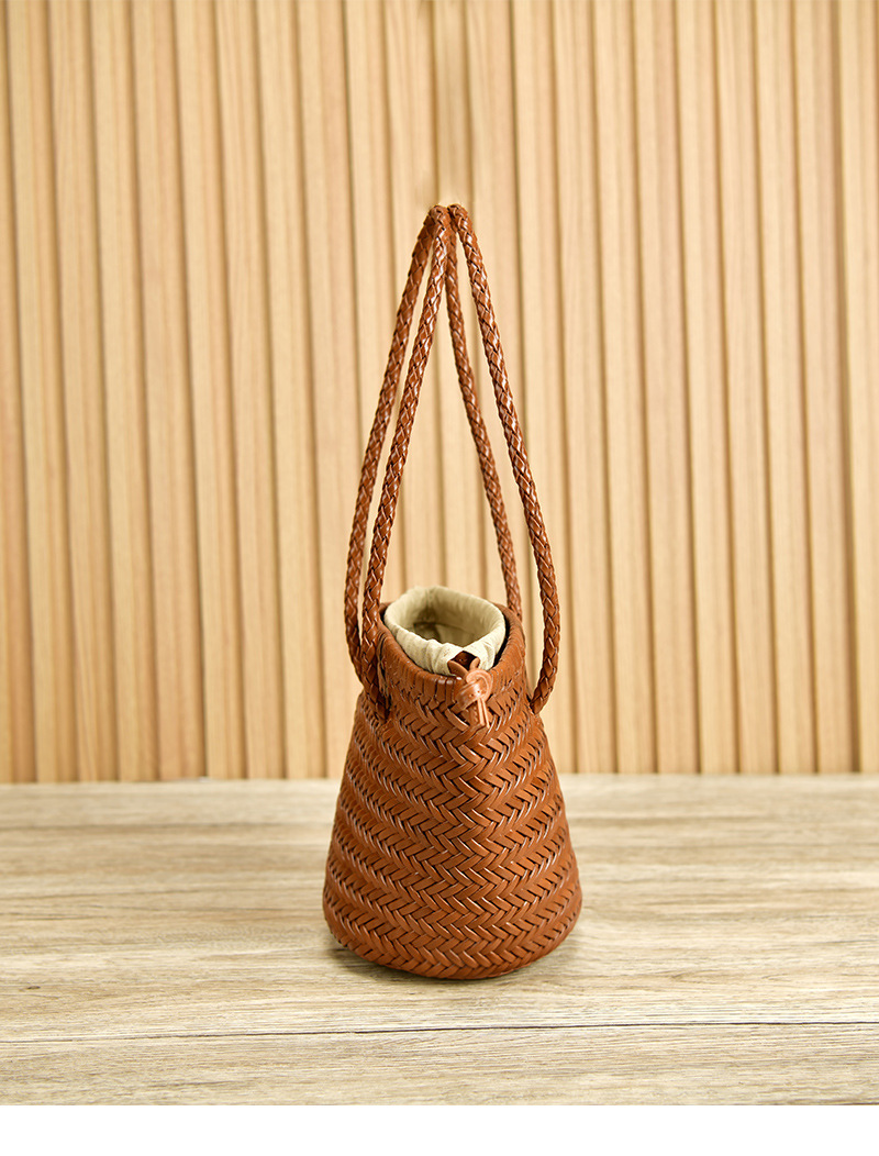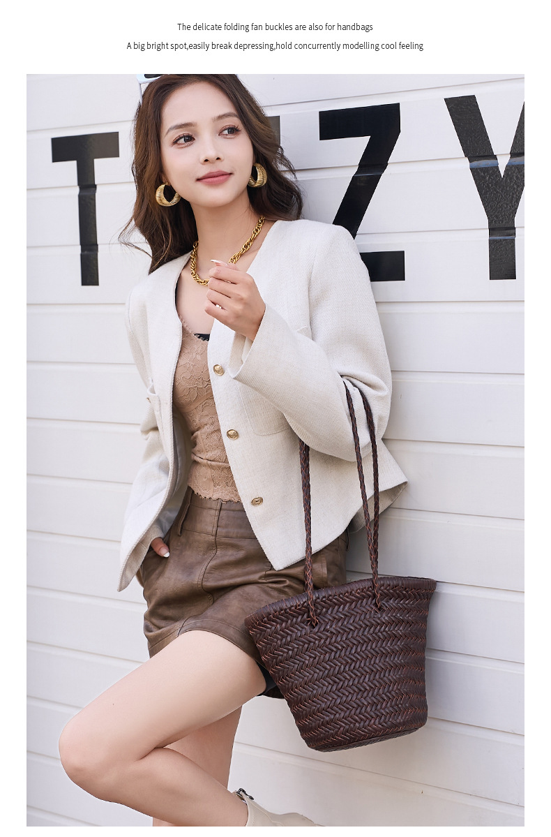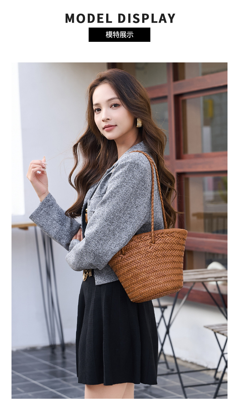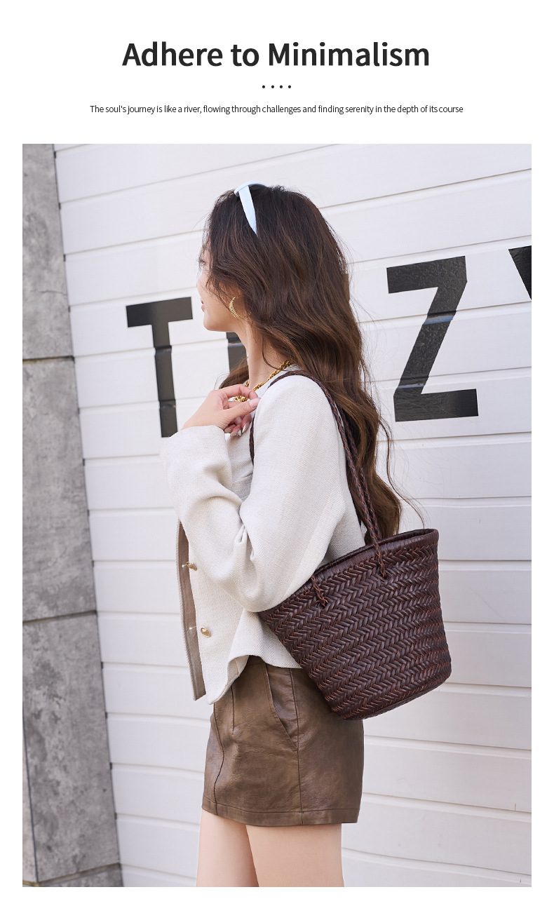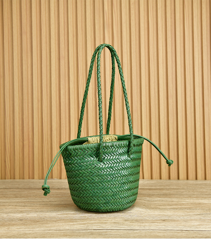 Z 홈 같은 스타일 탑 레이어 소가죽 짠 어깨 가방 빈티지 정품 가죽 수제 야채 바구니 가방 여행 비치 토트 백