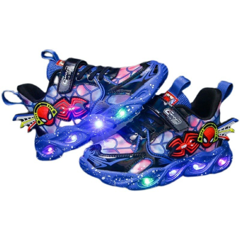 빛나는 스파이더맨 아동화 신상 봄 가을 남아 운동화 러닝화 LED 조명 포함 중소형 아동용 2026스토어 가기