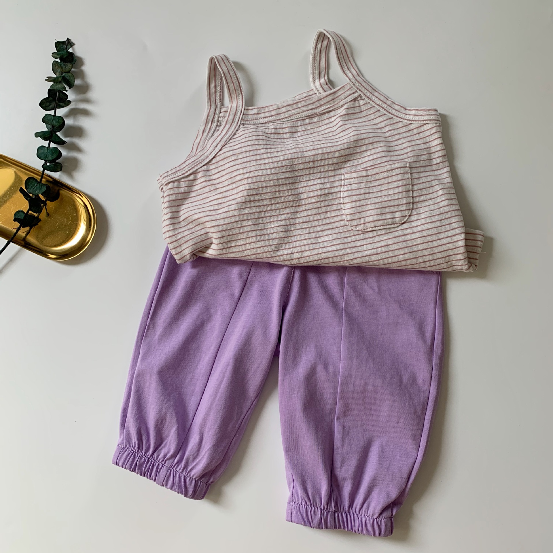 GL-kids 한국 여름 신상품 아동 스트라이프 포켓 캐미솔 남녀공용 슬러그 면 루즈한 조끼
