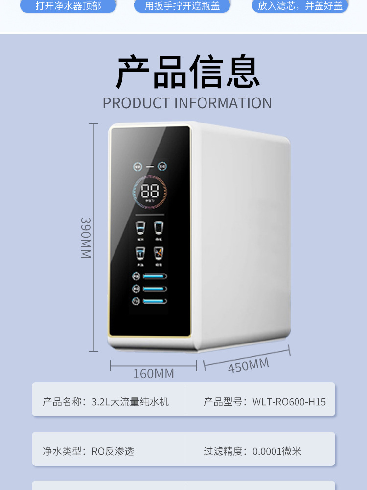 신형 정수기 가정용 RO 역삼투압 순수기 냉온수 겸용 일체형 정수기 가열 수도꼭지 직수형스토어 가기
