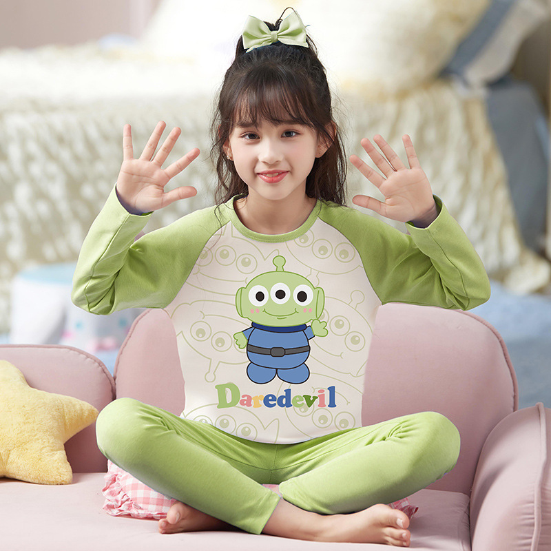 여자 따뜻한 옷 잠옷 봄과 가을 라운드 넥 긴 소매 고급 면화 여자 만화 귀여운 어린이 가정 의류 세트스토어 가기