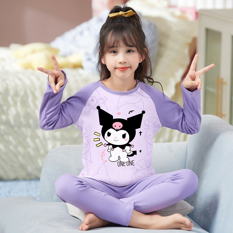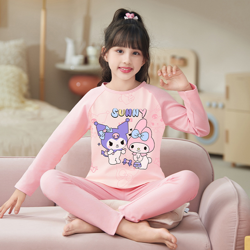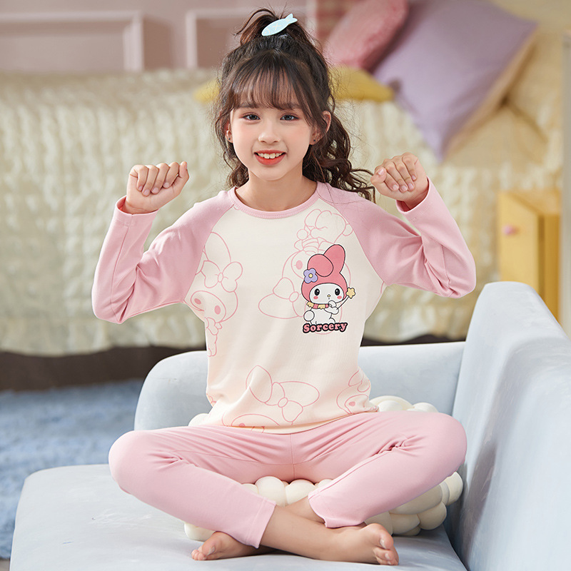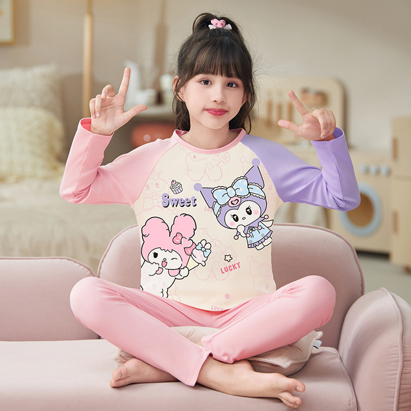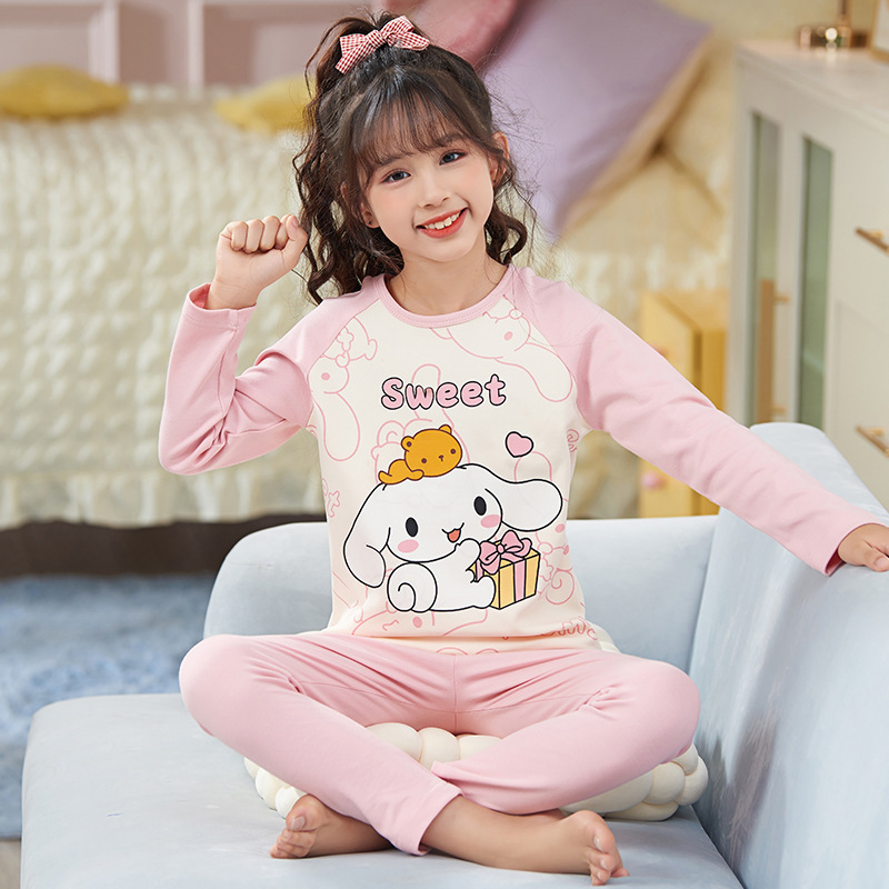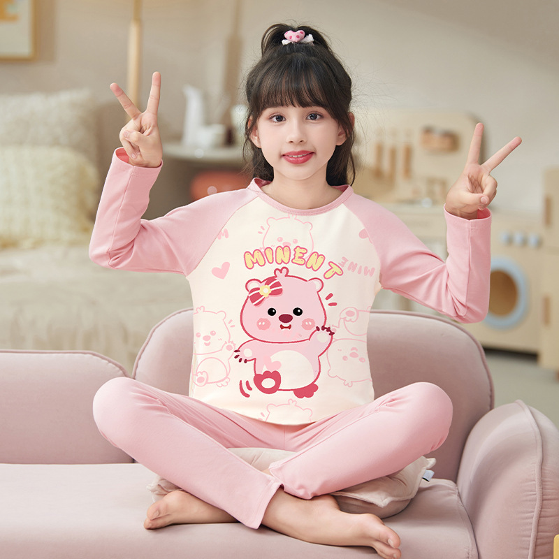 여자 따뜻한 옷 잠옷 봄과 가을 라운드 넥 긴 소매 고급 면화 여자 만화 귀여운 어린이 가정 의류 세트