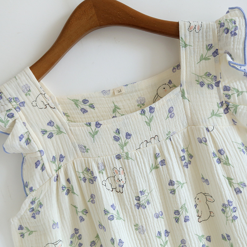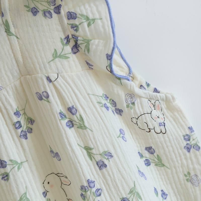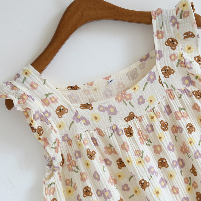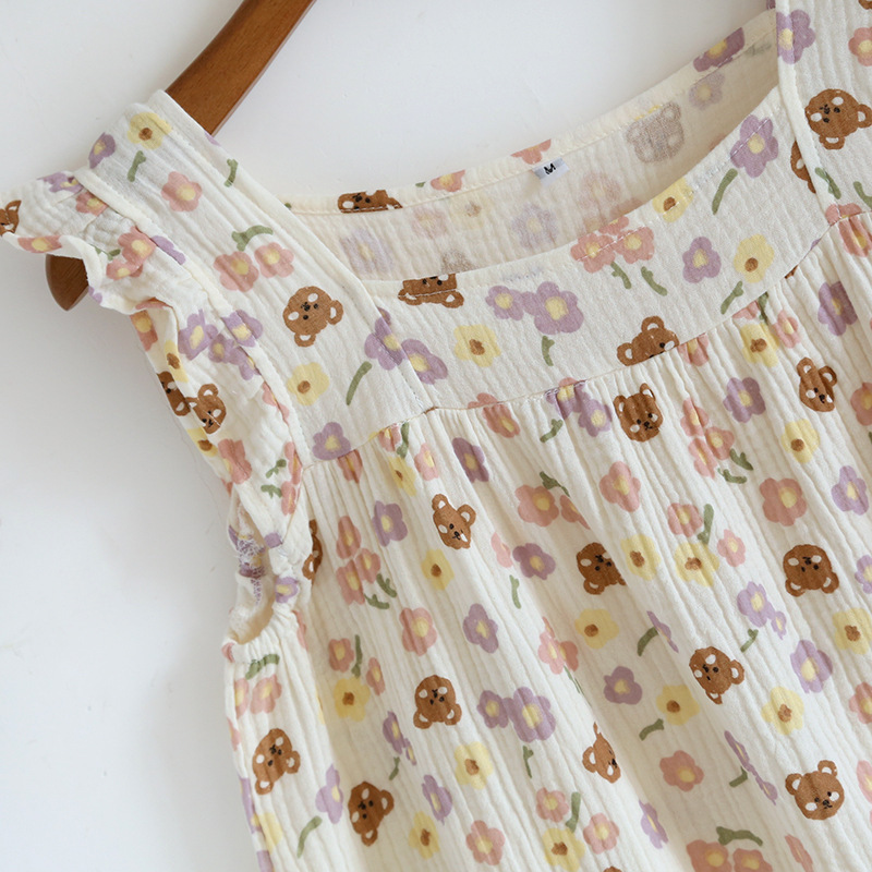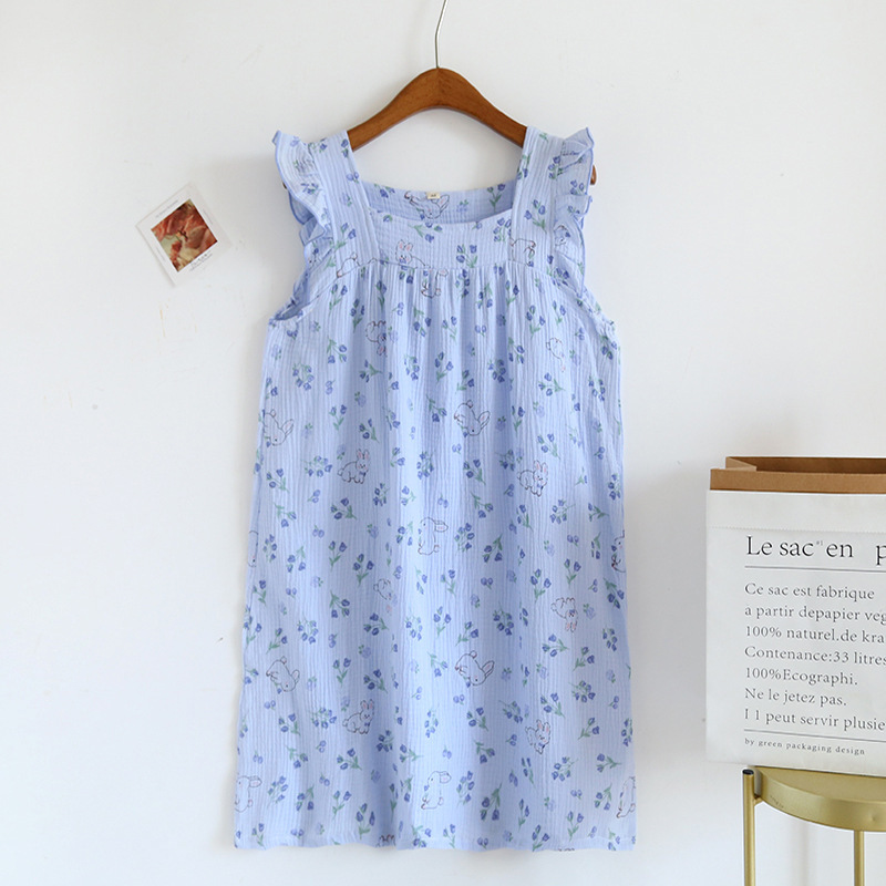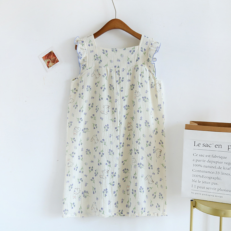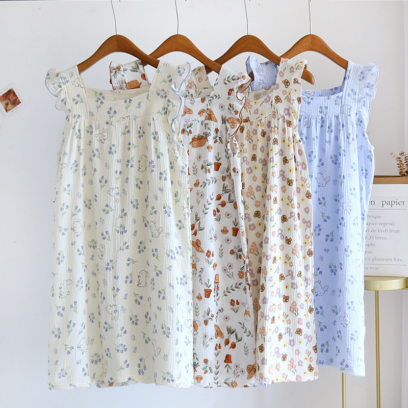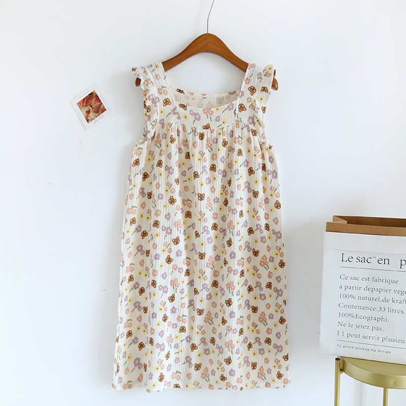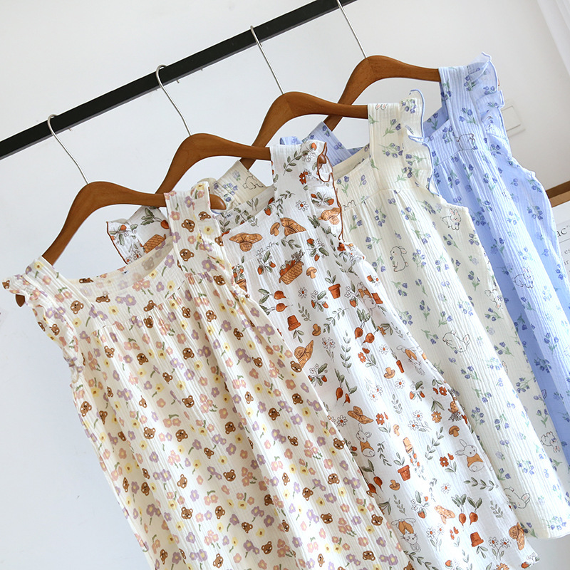 크레이프 조끼 잠옷 여자의 봄과 여름 면 통기성 새는 어깨 슬링 이상 무릎 중간 길이 스커트 얇은 겉옷 홈 원피스스토어 가기