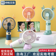 鹿角手持风扇usb迷你充电带灯学生口袋电扇桌面带底座支架小风扇