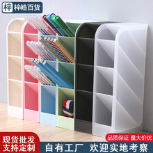 多格斜插式笔筒学生桌面收纳盒多功能透明文具筒四格个性置物架