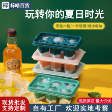 带盖6格冰块模具家用迷你冰格制冰模具盒带盖冻冰块小冰格